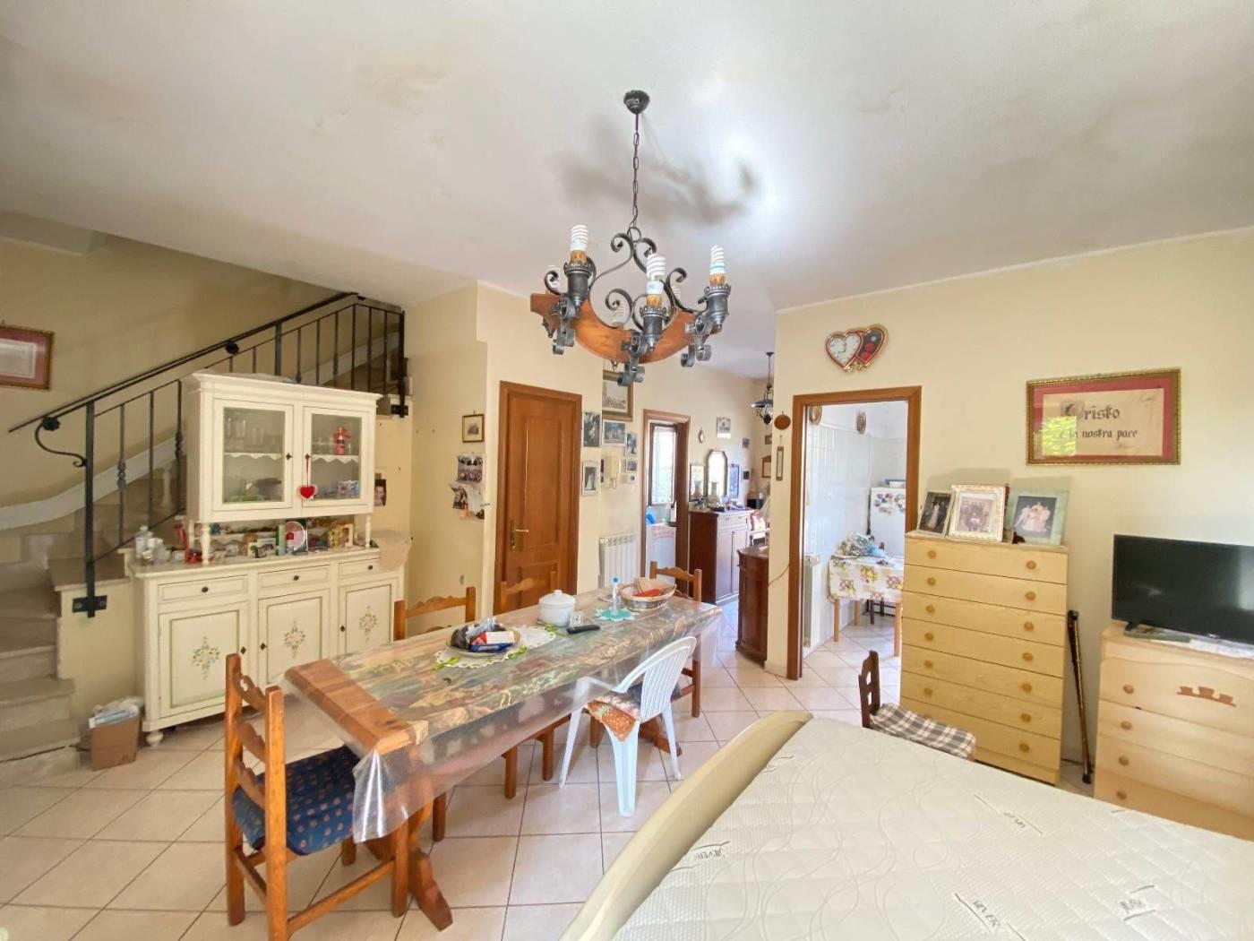 - Piano superiore: ampio salone con ballatoio e accesso al giardino di circa 60 m quadri, cucina abitabile con tavolo per quattro persone, bagno finestrato