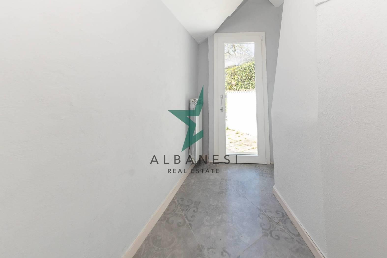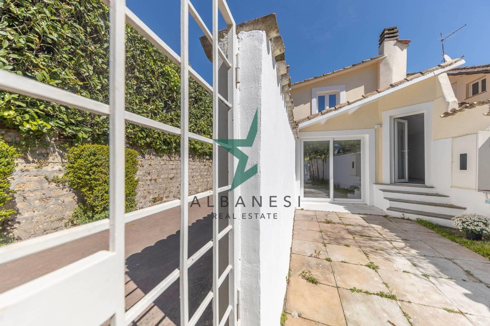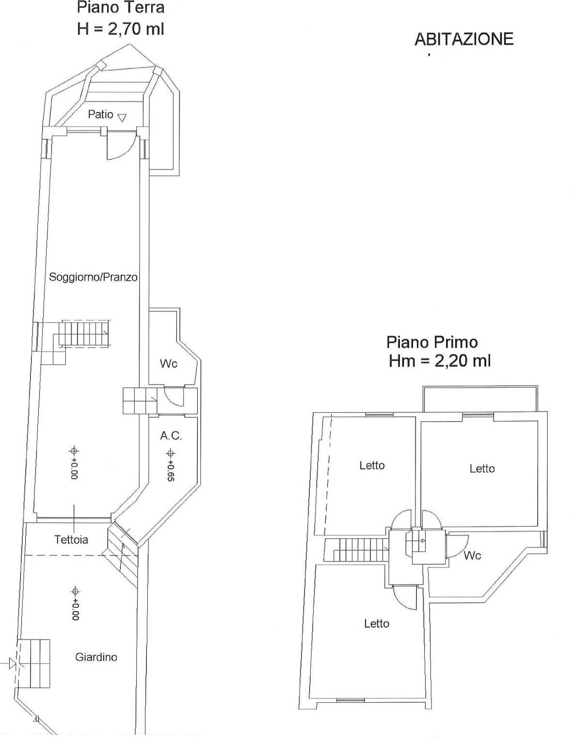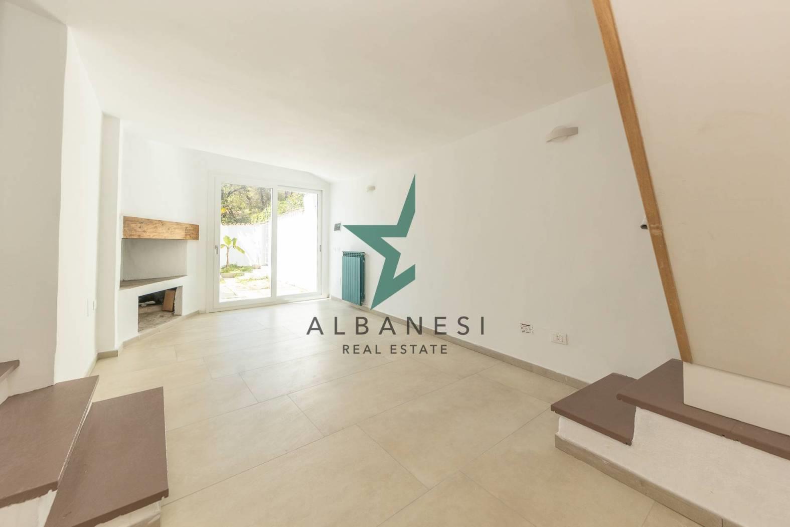 Villino Angolare di 105 mq ca su due livelli con Giardino di 35 mq ca così composto: Piano Terra: Ingresso con soggiorno open space con camino, cucina , bagno con doccia; Primo Piano: disimpegno, 3 camere, bagno con doccia. Completamente ristrutturato con cappotto termico ed infissi con doppi vetri taglio termico, riscaldamento autonomo.