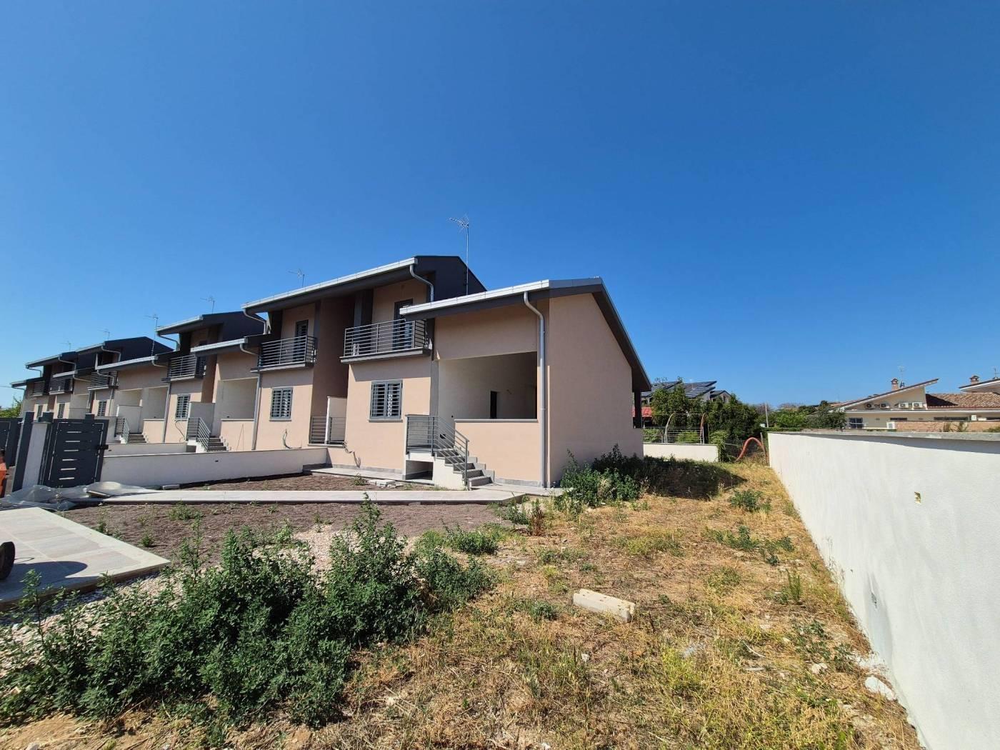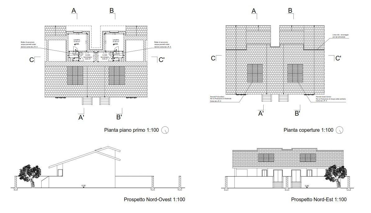 Le ville hanno tutte una metratura interna di circa 100mq totali composte da soggiorno angolo cottura, 3/4 camere da letto ed 2 bagni; sono disposte su due livelli, il prezzo varia in base al giardino ed in base alle modifiche che uno vorrà apportare; le ville sono costruite totalmente in Classe Energetica A3 e dotate di impianti innovativi ed all’avanguardia; è tutto completamente elettrico, quindi no gas, con riscaldamento a pavimento in ogni ambiente, pompa di calore, fotovoltaico da 3,2kW ad abitazione, split caldo/freddo in ogni stanza, infissi PVC con doppio vetro, grate di sicurezza, avvolgibili elettrici, portone in legno blindate, porte interne in legno laccato bianco, pavimento in gres porcellanato 60x120 e sanitari sospesi.