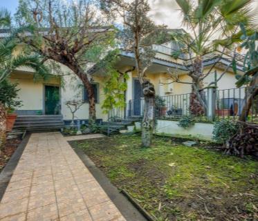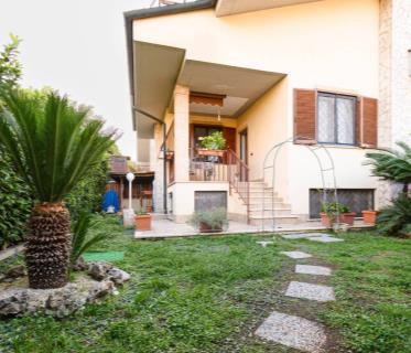 MARCO SIMONE in Via Tito Livio Schiera su 3 livelli composta da soggiorno/pranzo, cucina, bagno, balcone, veranda e giardino al piano terra; disimpegno, 2 camere, bagno e balcone al piano primo; appartamento autonomo al piano seminterrato composto da soggiorno con angolo cottura, camera, bagno e corte esterna.