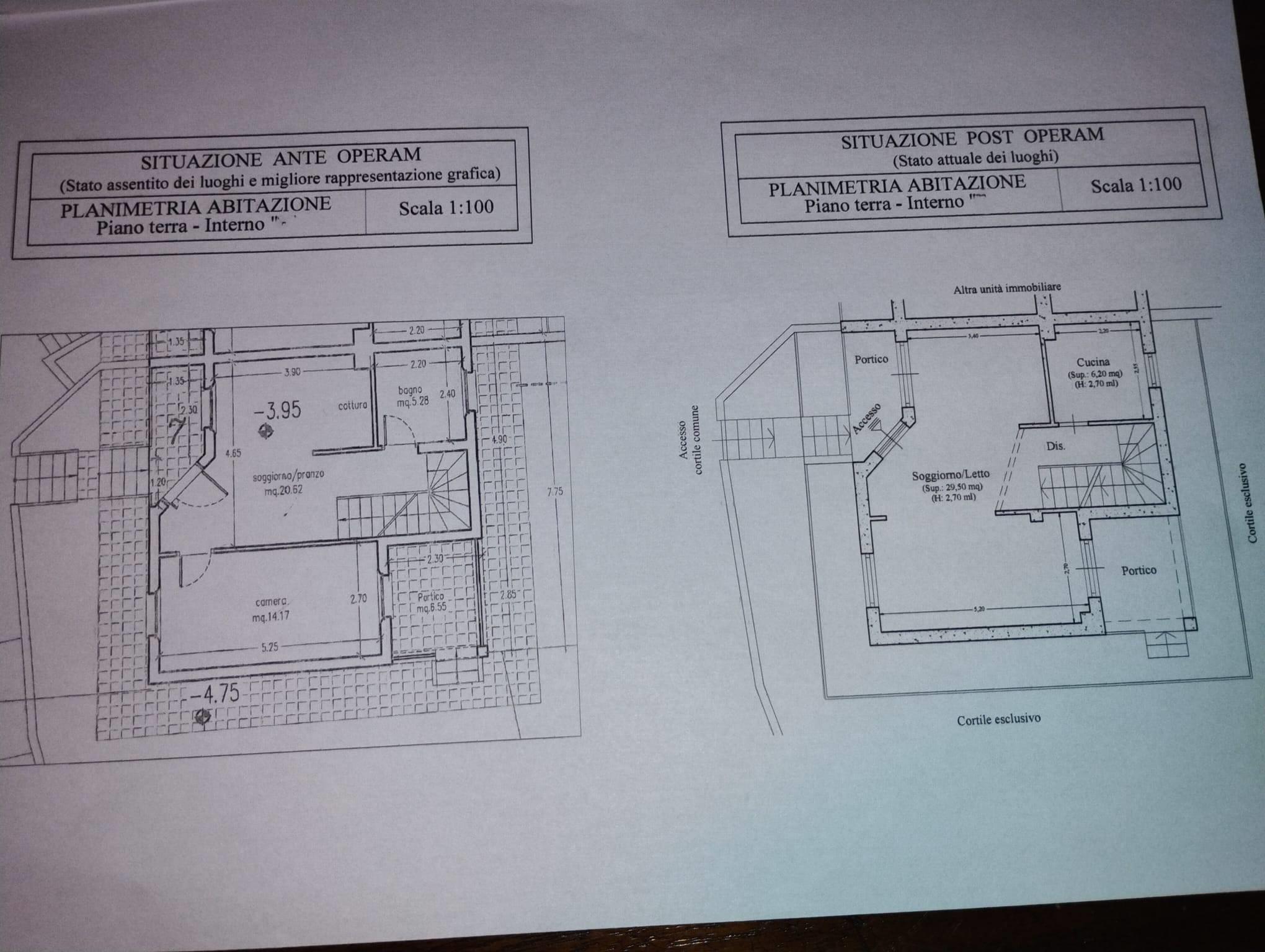 Al Piano Terra troviamo un ampio soggiorno con uscita diretta sul giardino, un cucinotto in muratura, e la scala interna che porta al Piano 1° dove troviamo, due comode camere da letto ed un bagno, al Piano Seminterrato, un salone, una cameretta ed un bagno.