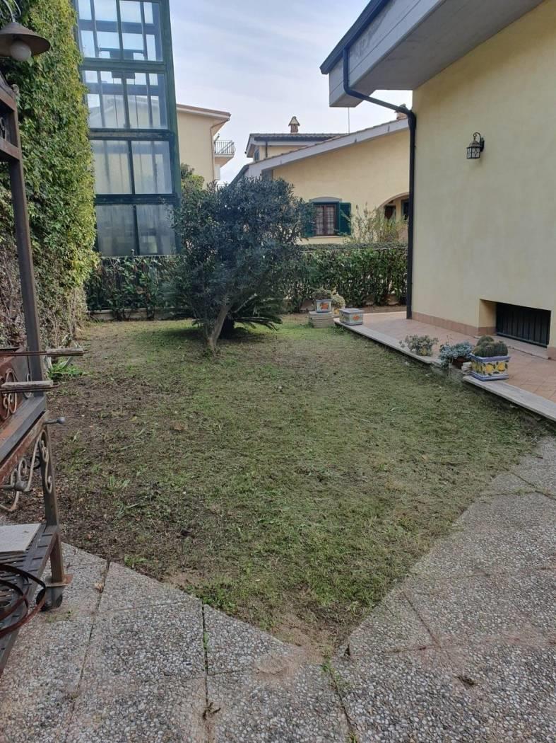 Marco Simone- Via Tito Livio l'agenzia Gmg propone in vendita la porzione ad angolo di un villino a schiera in un piccolo complesso di 7 abitazioni, sviluppantesi su tre livelli ed un giardino privato di mq 150 ca.