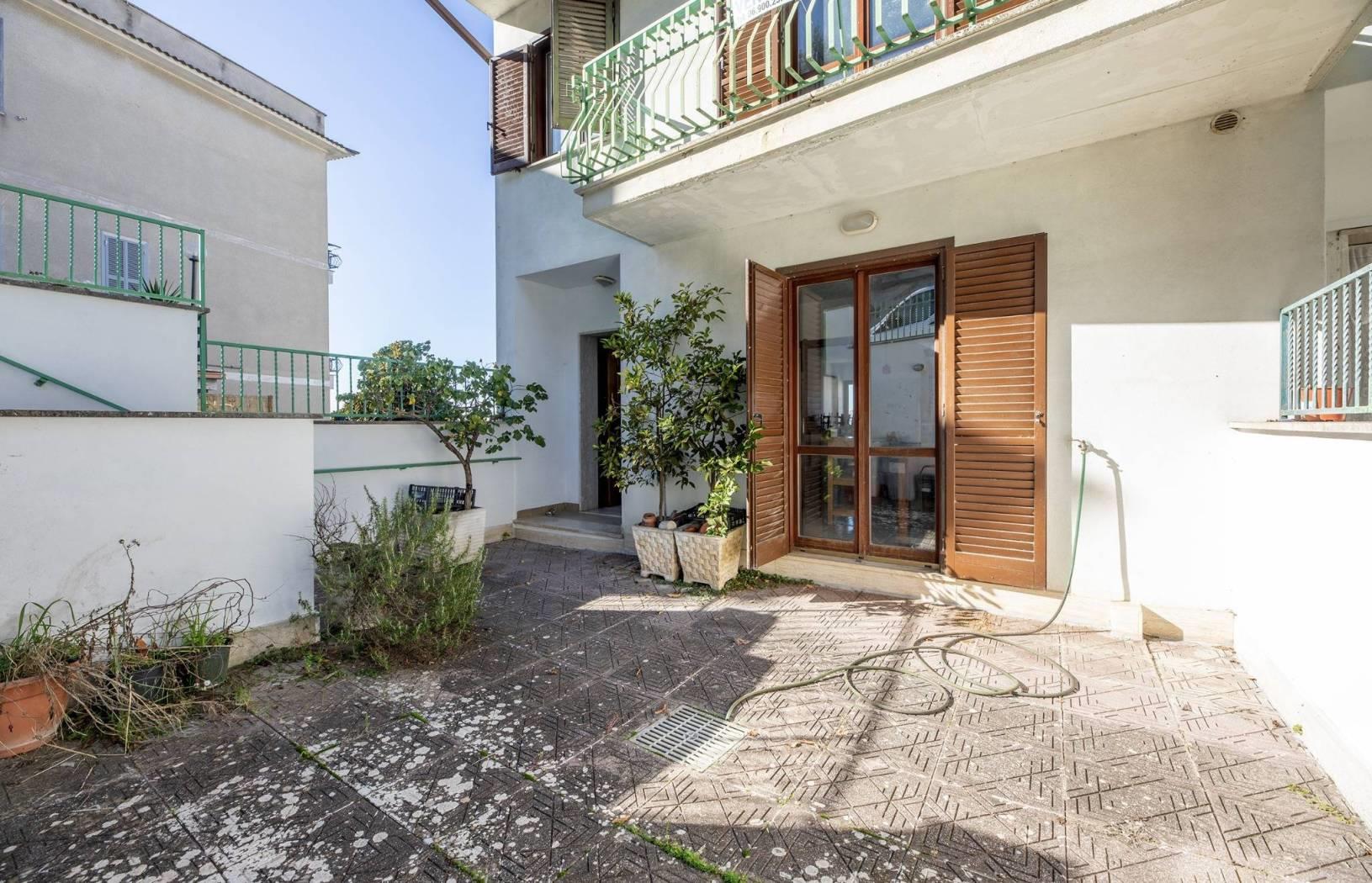 - Piano terra: luminoso salone, cucina abitabile, bagno, balcone panoramico e corte esterna pavimentata di circa 30 mq, ideale per momenti all’aperto.
