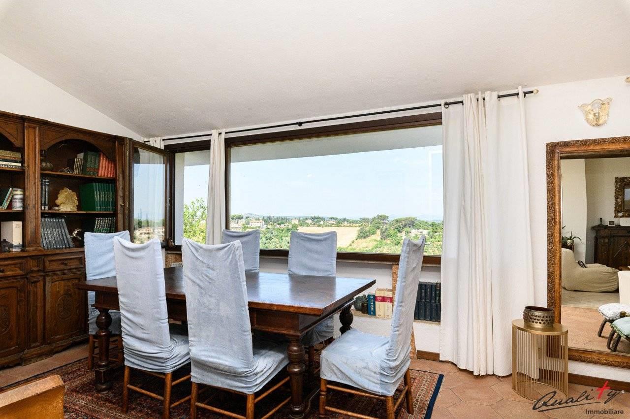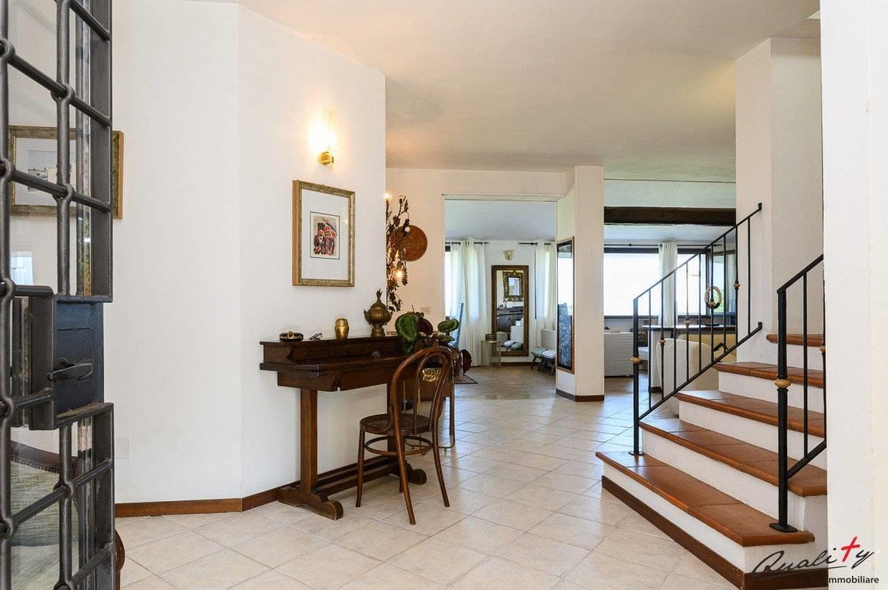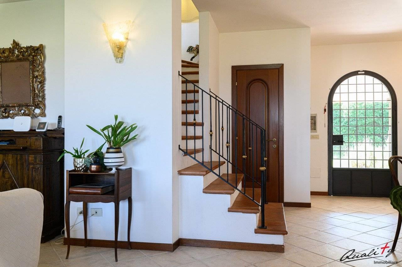Superato il giardino anteriore, ideale per un momento di relax, si arriva alla villa la quale risulta essere contornata da una splendido porticato; si accede così al piano terra, dove, superato l'ampio ingresso, ci accoglie la zona giorno, composta da salone doppio con camino e con vetrate panoramiche sulla splendida vallata, cucina abitabile con sala da pranzo e terrazza a livello e piccolo bagno di servizio, mentre nella zona notte troviamo due comode camere da letto, entrambe con bagno interno.