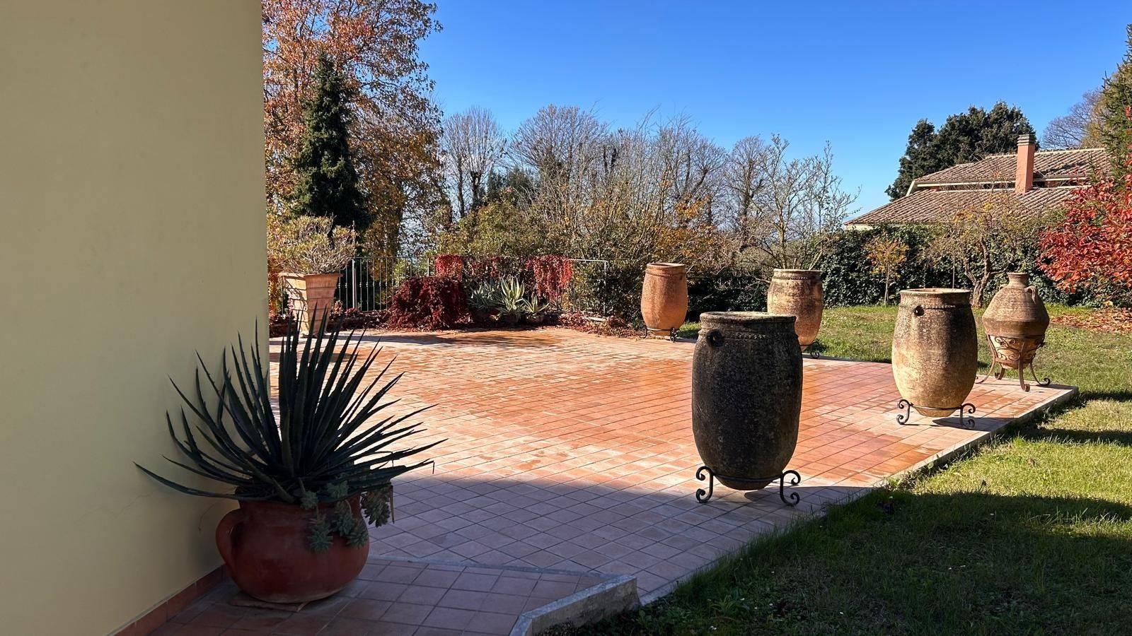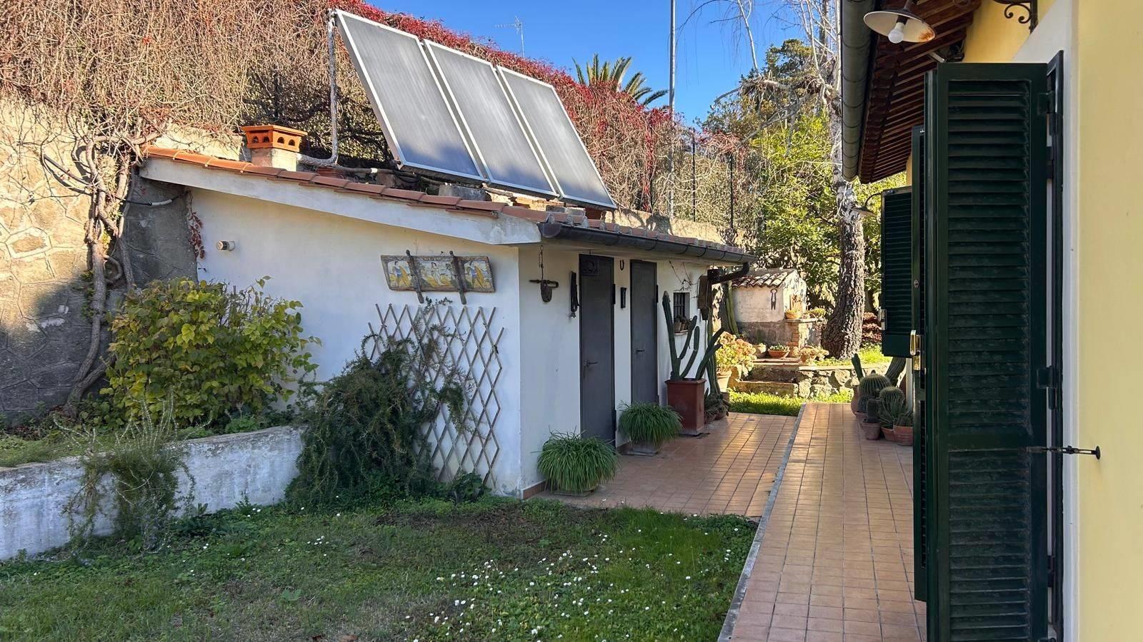 Nel giardino, è presente un locale tecnico con tutti gli impianti ed i pannelli solari per la produzione dell'acqua calda, un ripostiglio esterno ed un box di circa 37 mq.