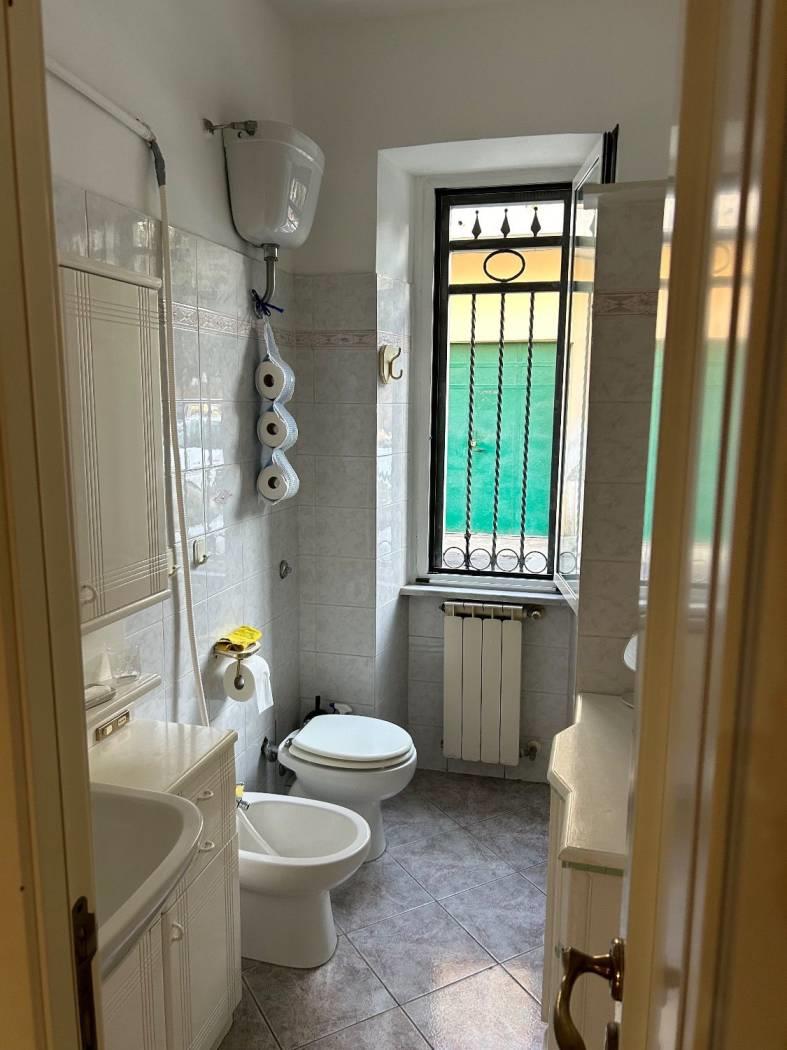 Il bagno è completo di lavandino, bidet, wc, doccia.