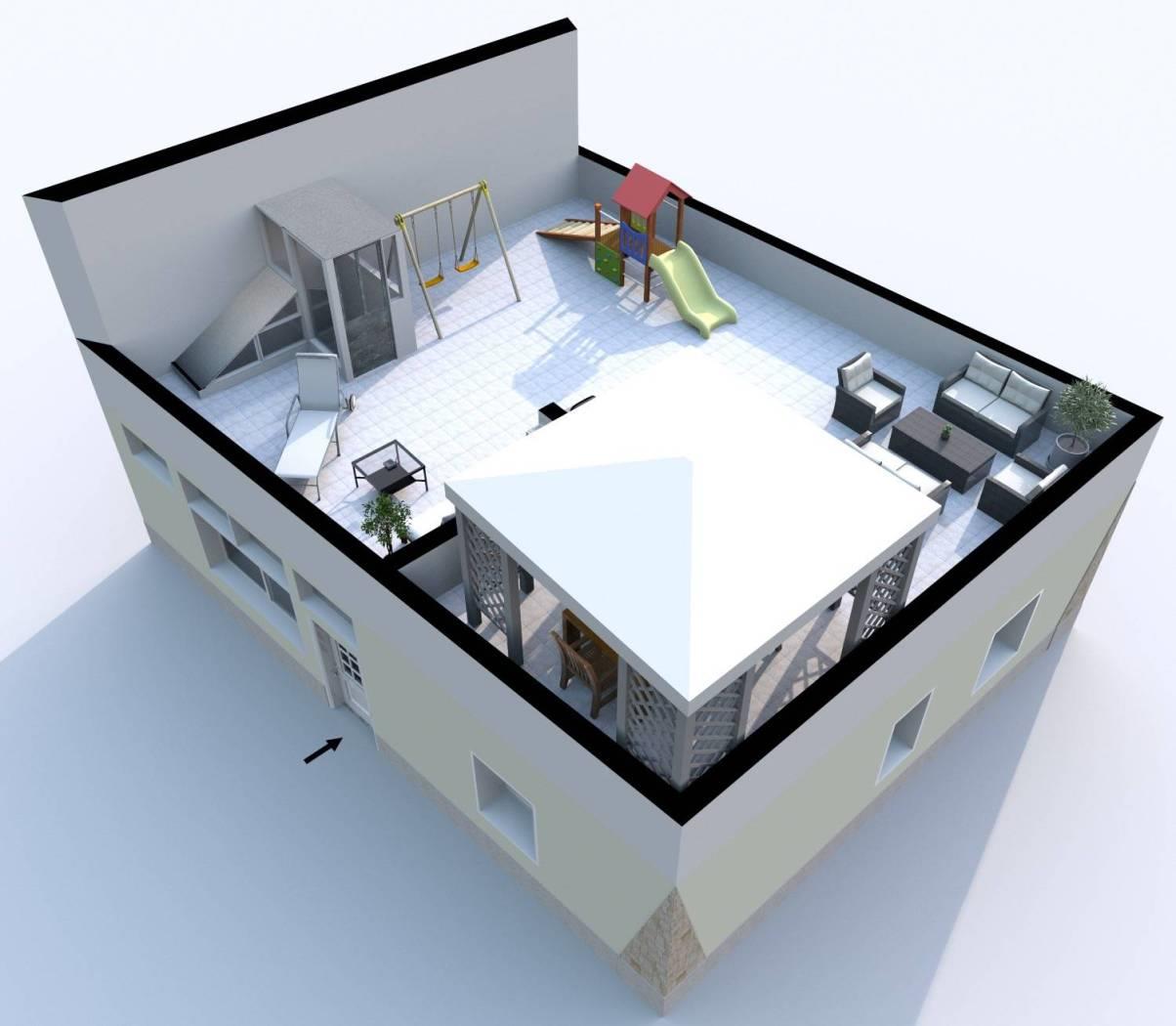- un lastrico solare calpestabile al 1° Piano di 88Mq circa al quale si accede dalla veranda al Piano Terra;