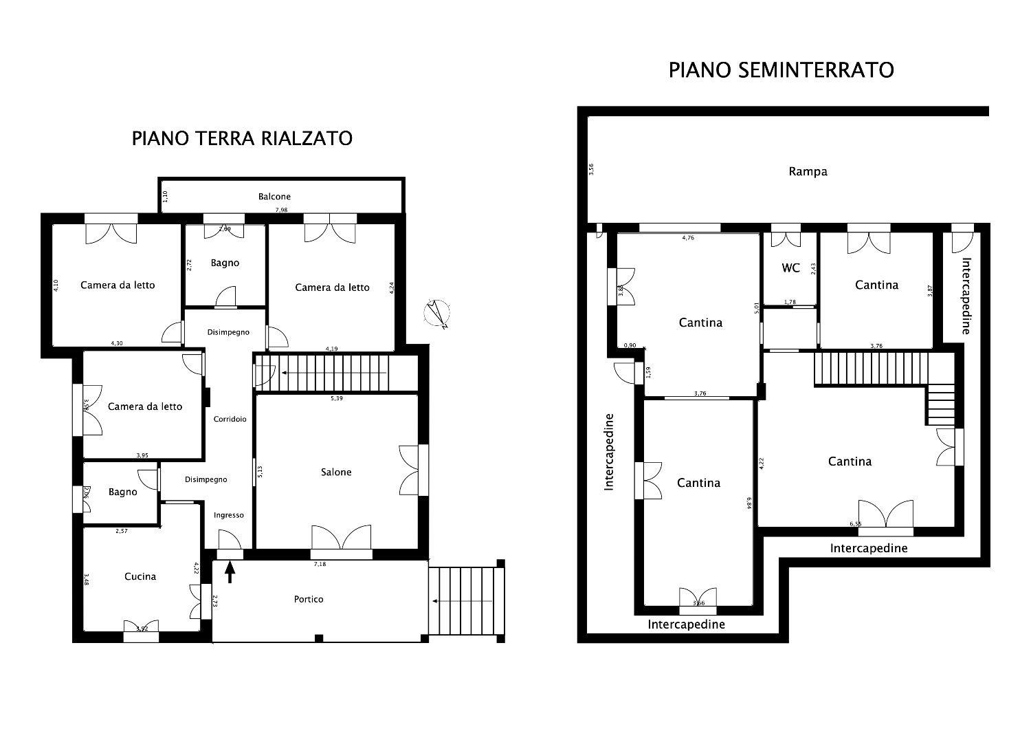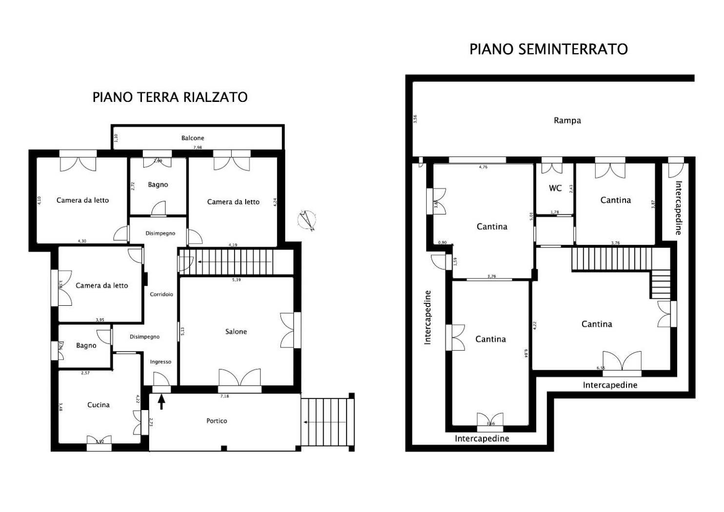 - Piano Seminterrato, fuori terra di almeno 1,80Mt circa, con altezza interna di 3,05Mt, collegato anche internamente al Piano Terra rialzato, oltre ad un accesso carrabile con comoda rampa. Al suo interno è diviso da 4 ambienti tutti finestrati e 1 Bagno. Si presenta in uno stato grezzo, completamente da rifinire.