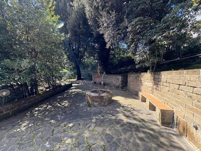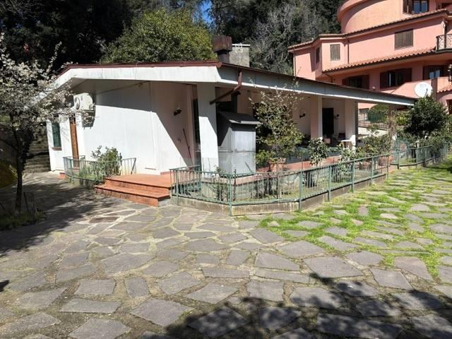 Petruscheto, NUDA PROPRIETA' (usufruttuario 90 anni), villino unico livello con giardino privato in posizione panoramica, composto da soggiorno con camino, cucina abitabile con ripostiglio, disimpegno con armadio a muro, 2 camere matrimoniali, di cui una con bagno interno, 1 studio, un secondo bagno e ampio portico abitabile.