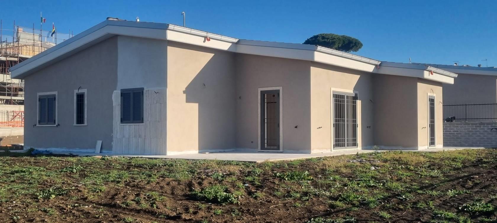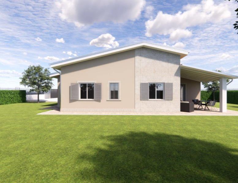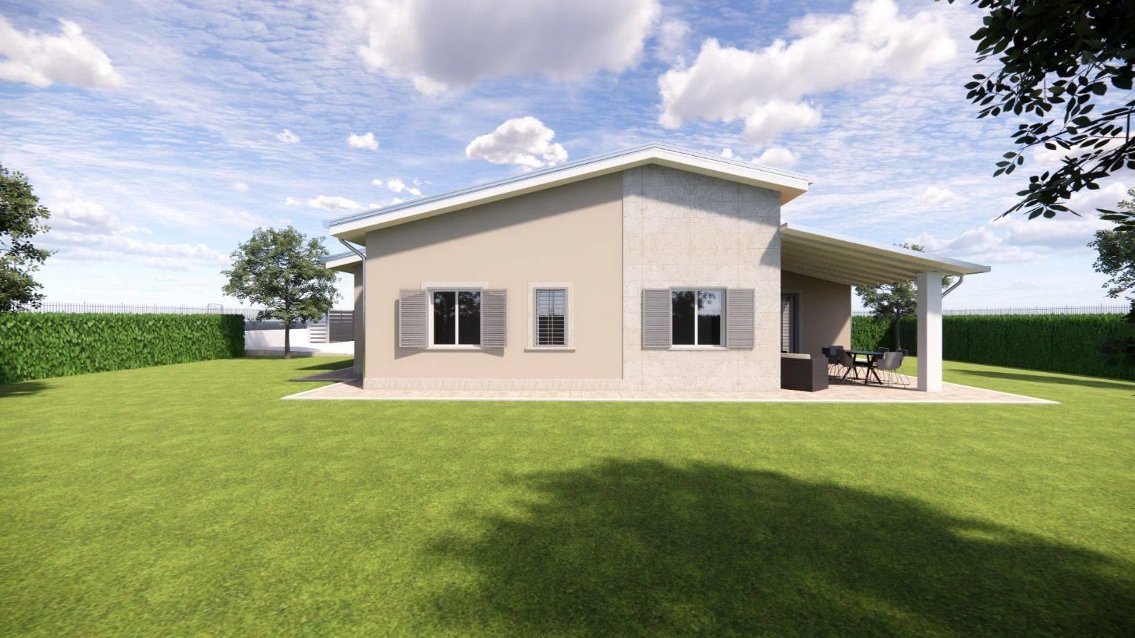 La villa, progettata su un unico livello, è circondata da un ampio giardino con passo carrabile di circa 850 mq. con un grande portico coperto