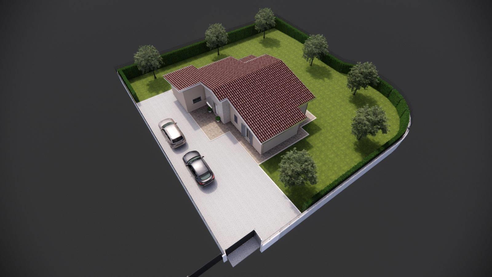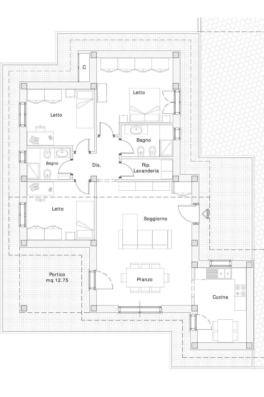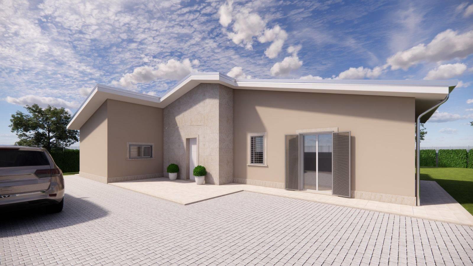 La villa, progettata su un unico livello, è circondata da un ampio giardino con passo carrabile di circa 850 mq. con un grande portico coperto