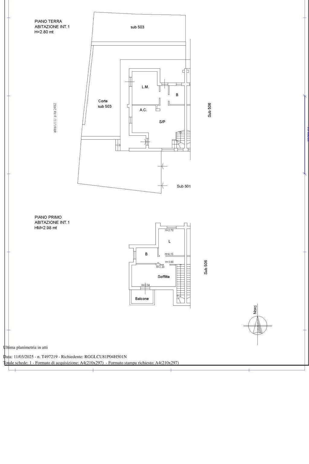 Piano Primo: Zona notte composta da due camere da letto, secondo bagno e balcone.