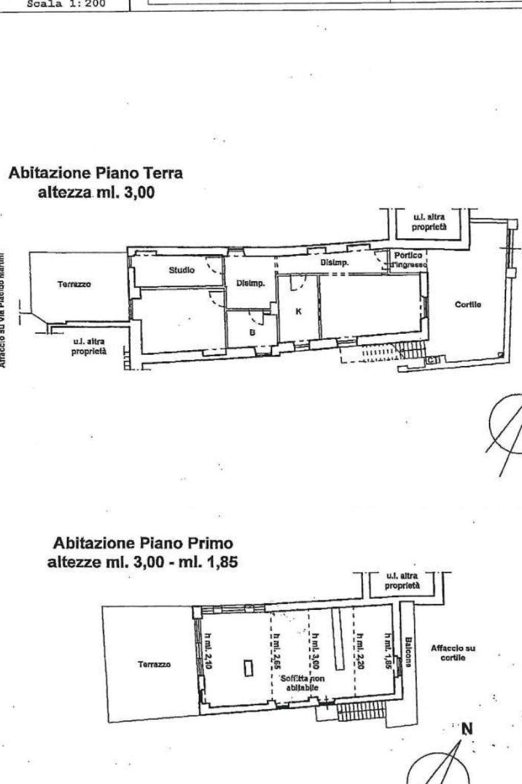 L' immobile ha ingresso indipendente del cortile privato da accesso al piano terra dove troviamo un appartamento di circa ottanta metri quadrati ed un terrazzo panoramico, ed alla mansarda che per altezza e rifiniture può essere abitata, dotata anch'essa di terrazzo panoramico e balcone.