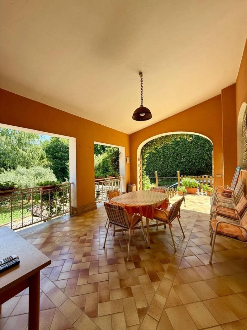 Poi abbiamo una cucina abitabile, dotata di accesso diretto ad un portico esterno ideale per cene all'aperto e per godere del giardino curato di circa 1000 mq, al piano terra troviamo un bagno che serve la zona giorno. Salendo al piano superiore troviamo un ampio disimpegno che conduce ad una camera padronale con bagno interno ed un balcone, altre due camere grandi perfette per garantire il massimo del comfort, un altro bagno a servizio delle due camere. La proprietà è completata da una sala hobby nel seminterrato con angolo cottura, perfetta per ospiti o come area ricreativa ed un bagno.