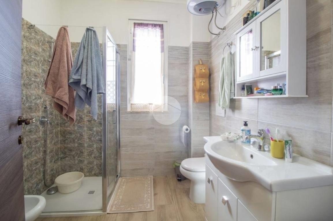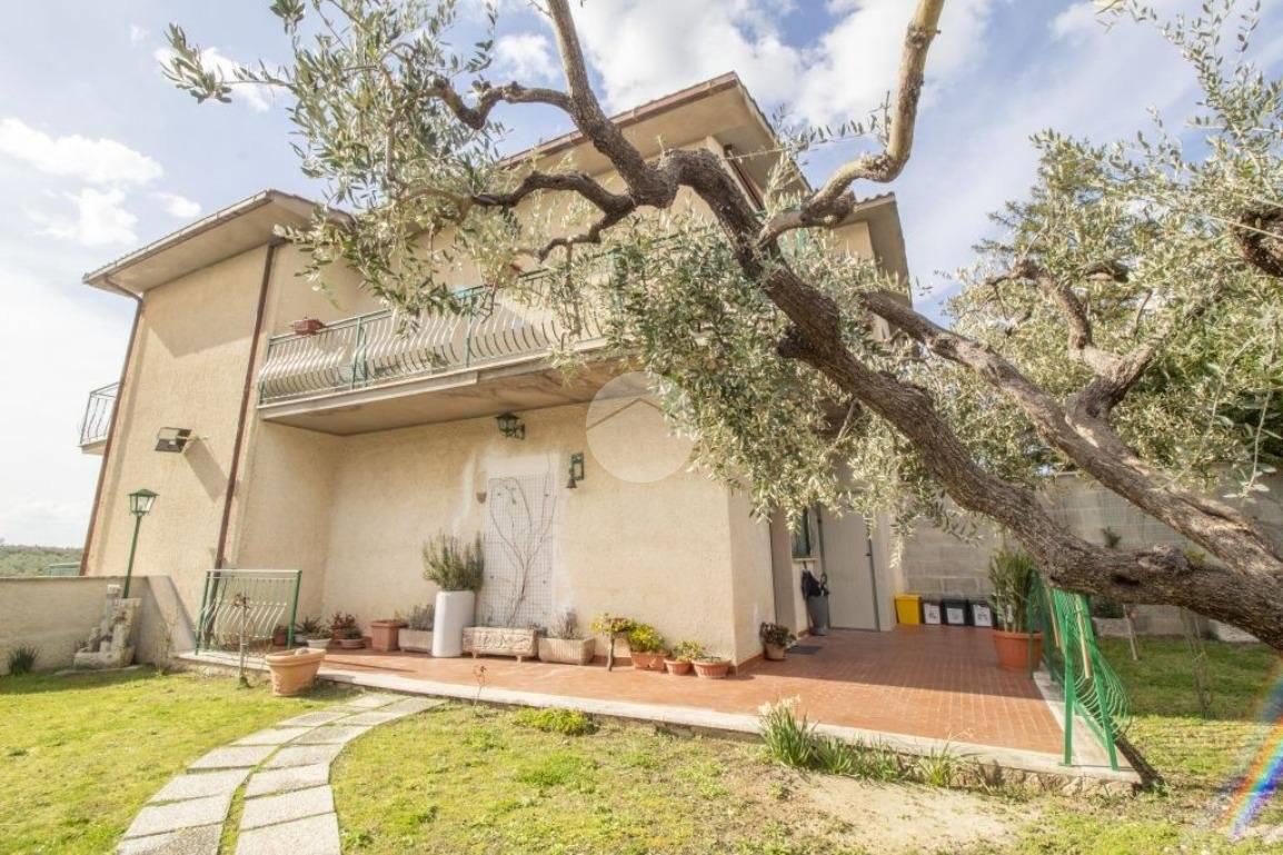Nella parte inferiore, l’area esterna è rifinita in cemento e ospita una comoda terrazza panoramica, perfetta per pranzi all’aperto e serate estive. Da qui si gode di una splendida vista sul terreno circostante, coltivato con circa 25 ulivi, che donano fascino, privacy e un autentico tocco mediterraneo alla proprietà.