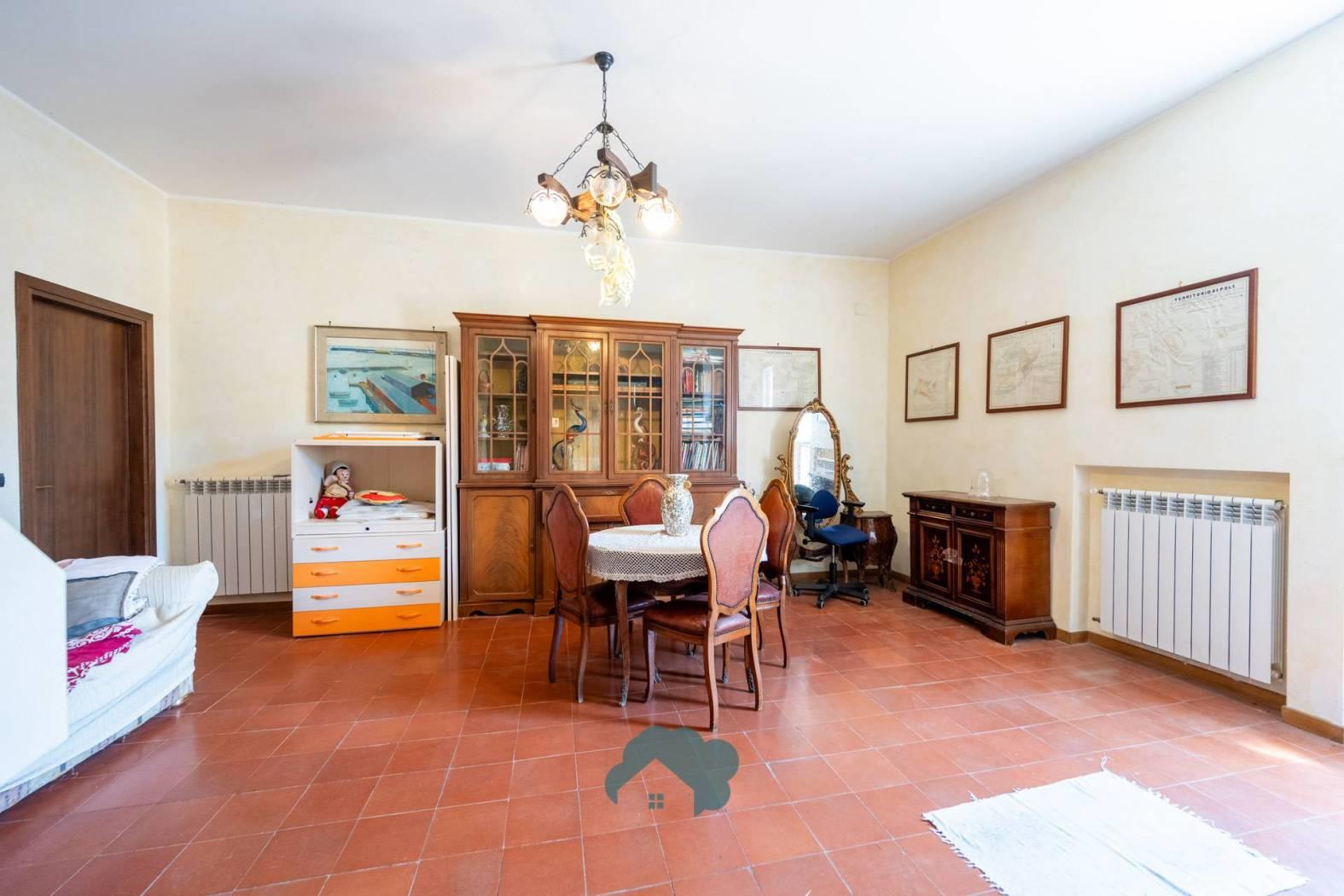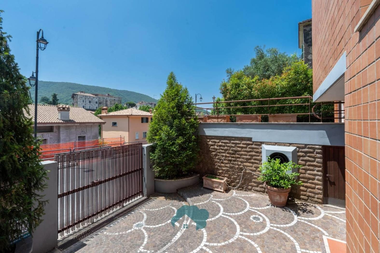 La villa è composta da spazi ampi e luminosi, con ambienti finestrati che offrono una vista suggestiva sul centro storico di Poli.