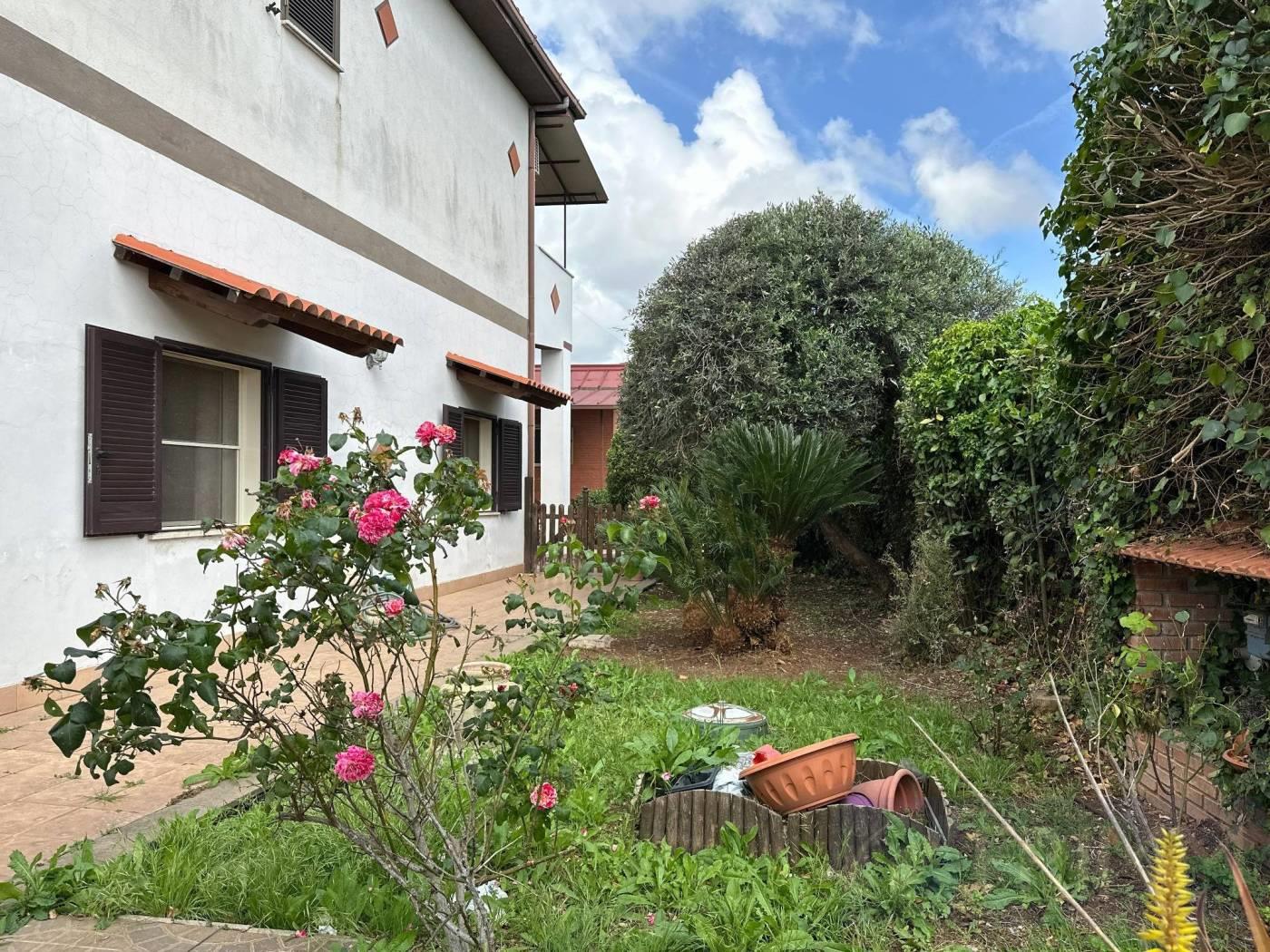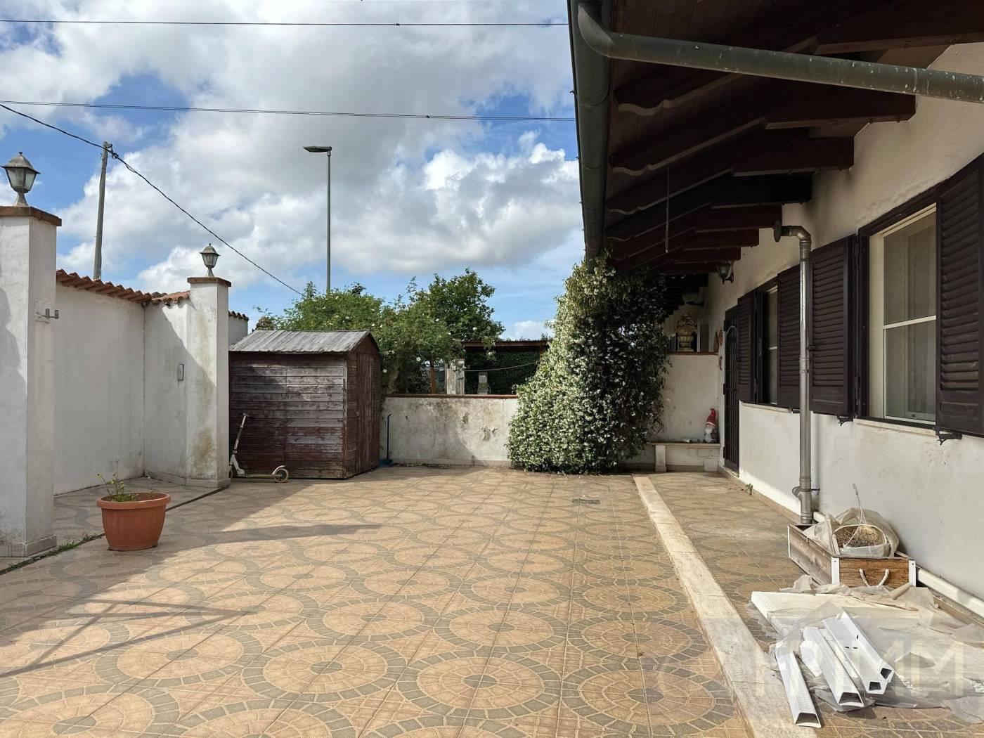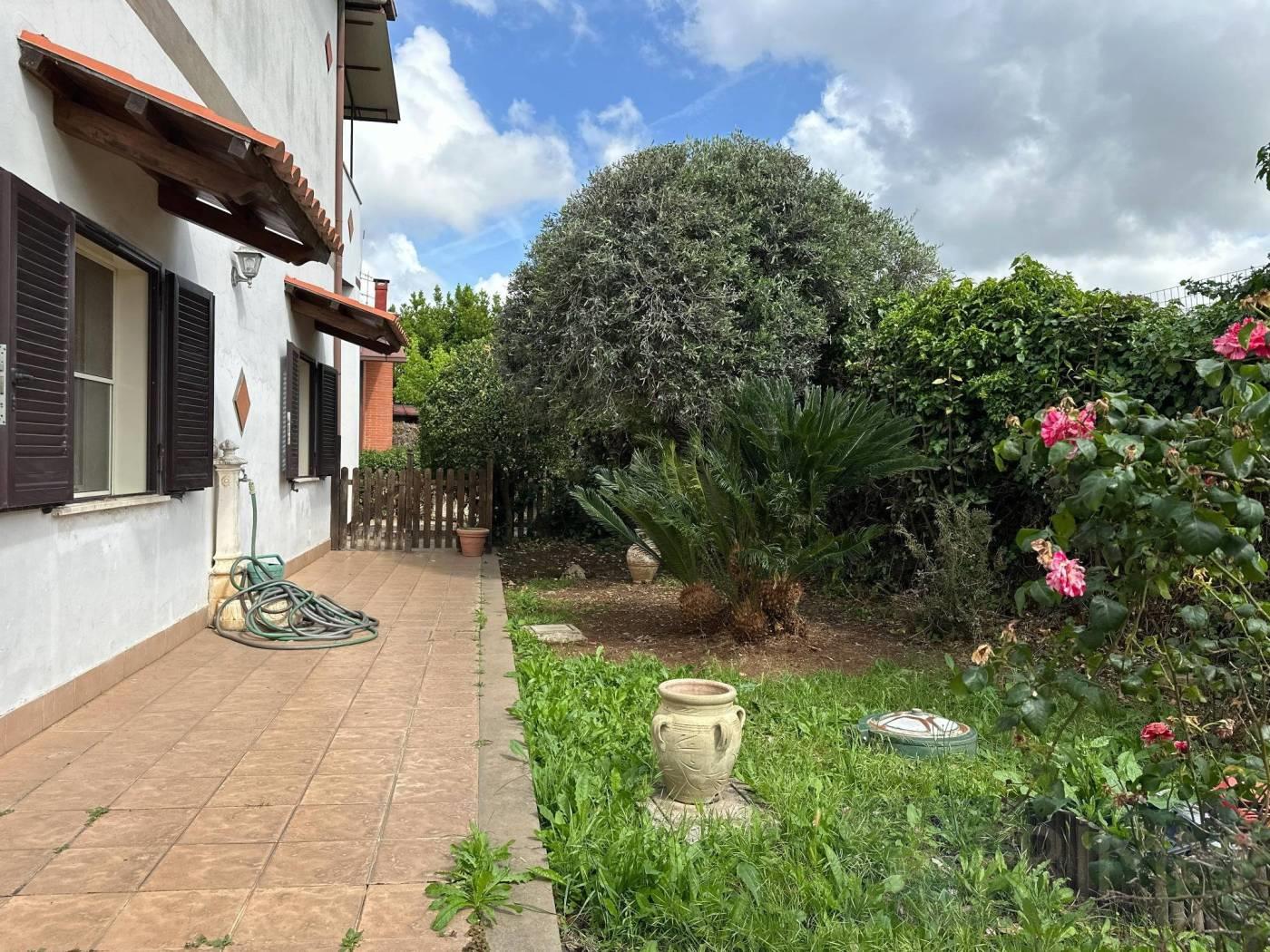 Pomezia, Località Santa Procula, Via del Sughereto 13, proponiamo la vendita di un appartamento in villa con giardino e ingresso indipendente. Piano terra composto da salone con zona cucina separata, bagno, ripostiglio, disimpegno camera matrimoniale con bagno privato e cameretta. Giardino e ampio parcheggio all'interno della proprietà privata all'ingresso della proprietà, possibilità di creare ulteriore ingresso privato direttamente su strada. Impianto di riscaldamento autonomo utilizzabile sia con la stufa a pellet, sia a gas metano (bombolone con contatori). Grate di sicurezza, zanzariere. L'appartamento è stato ristrutturato nei primi anni 2000, si presenta in buonissime condizioni.