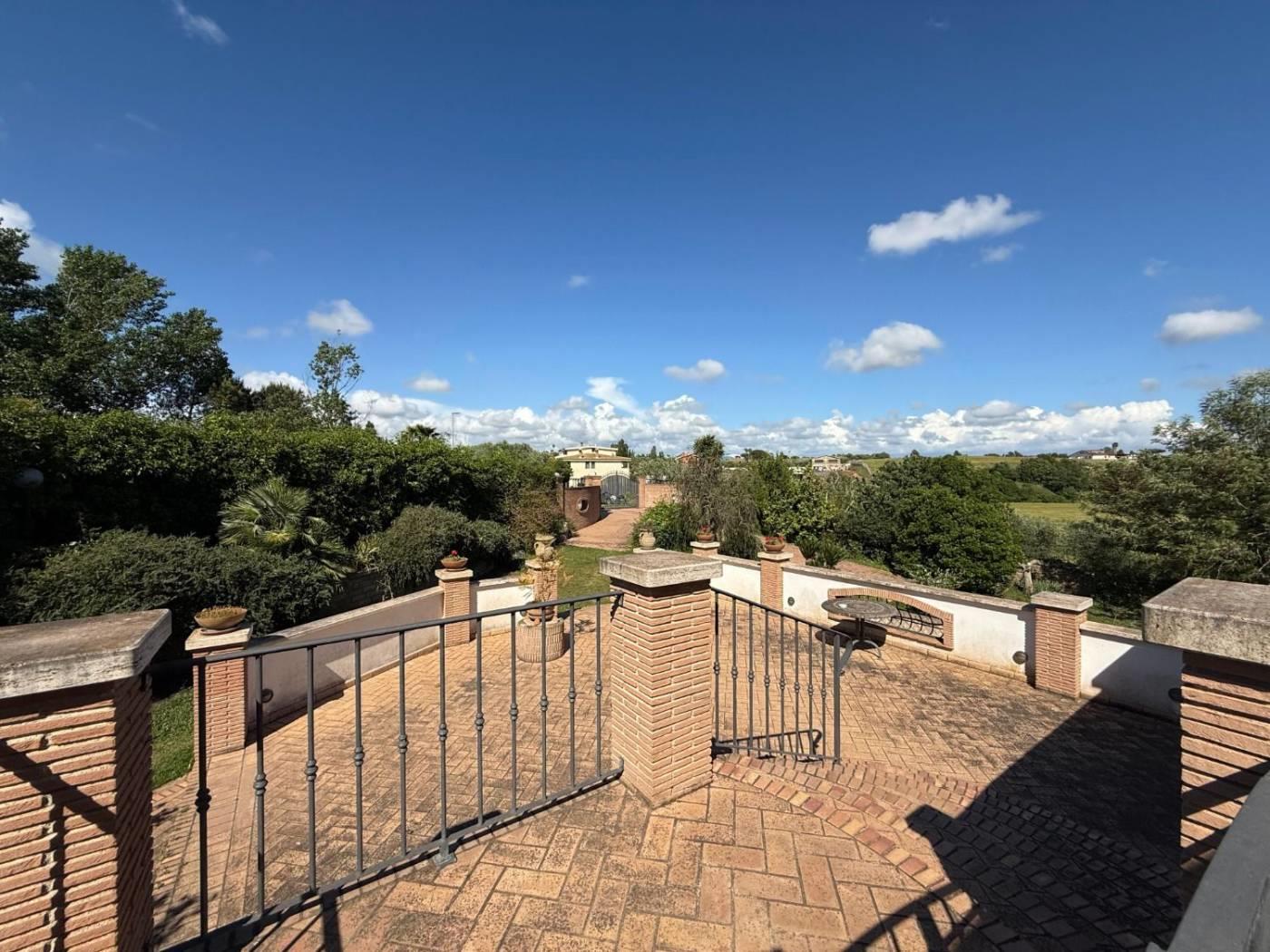 L'immobile si sviluppa su tre livelli: al piano terra due ampi e luminosi saloni, due servizi e una cucina abitabile; al primo piano una cucina abitabile, una camera matrimoniale con cabina armadio e terrazzo, un servizio con finestra, due camere, un servizio con doccia e finestra, un locale lavanderia e un ampio salone con camino. Circonda tutto un grande terrazzo panoramico perimetrale con vista su tutta la vallata della sughereta. E' infine presente un sottotetto mansardato allo stato grezzo.