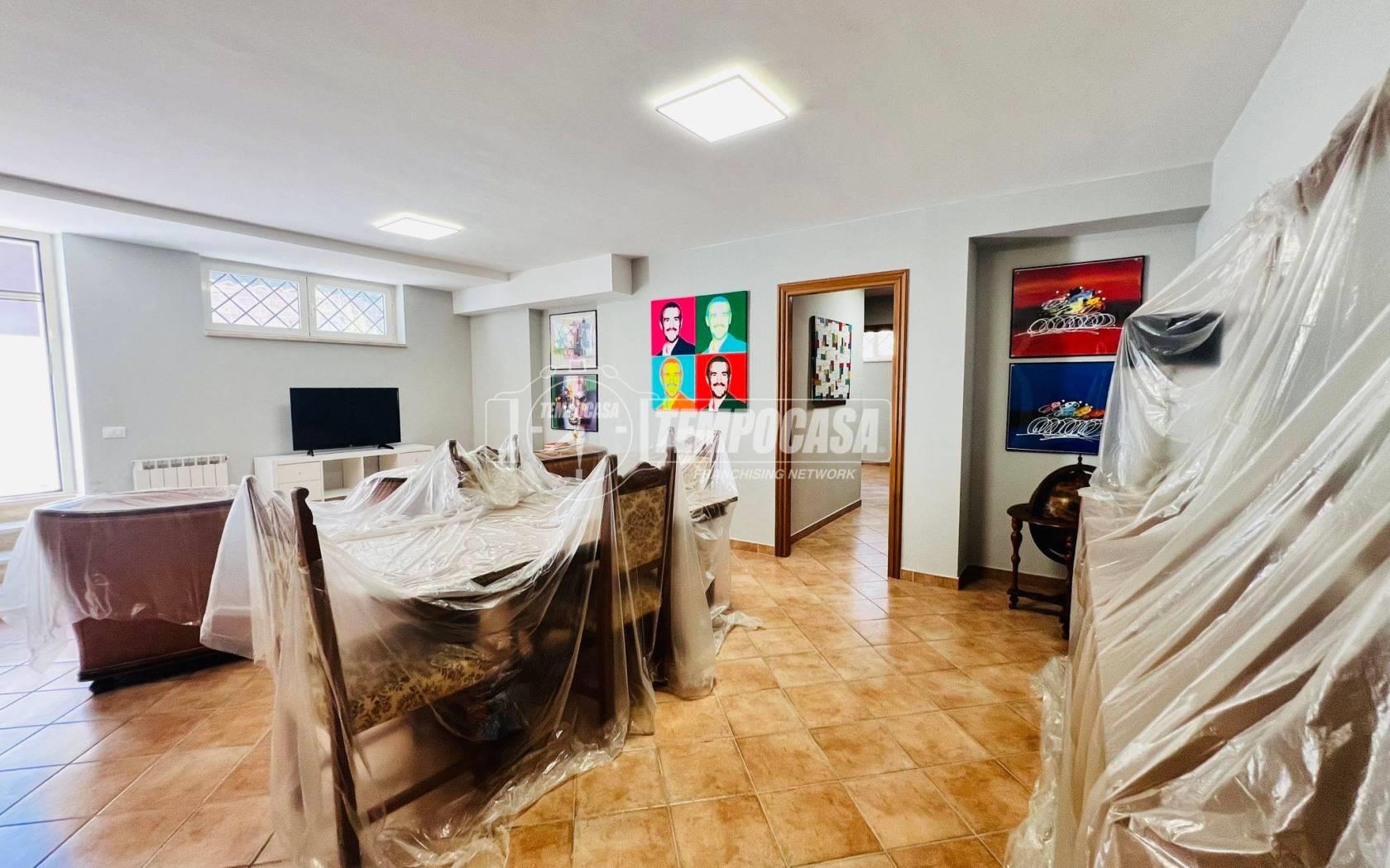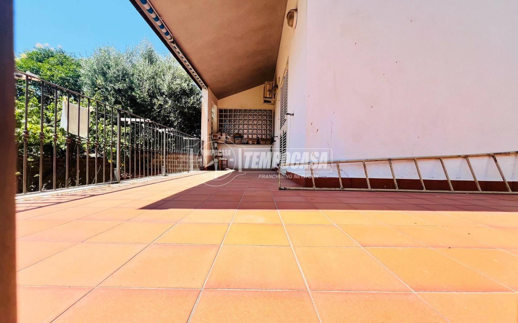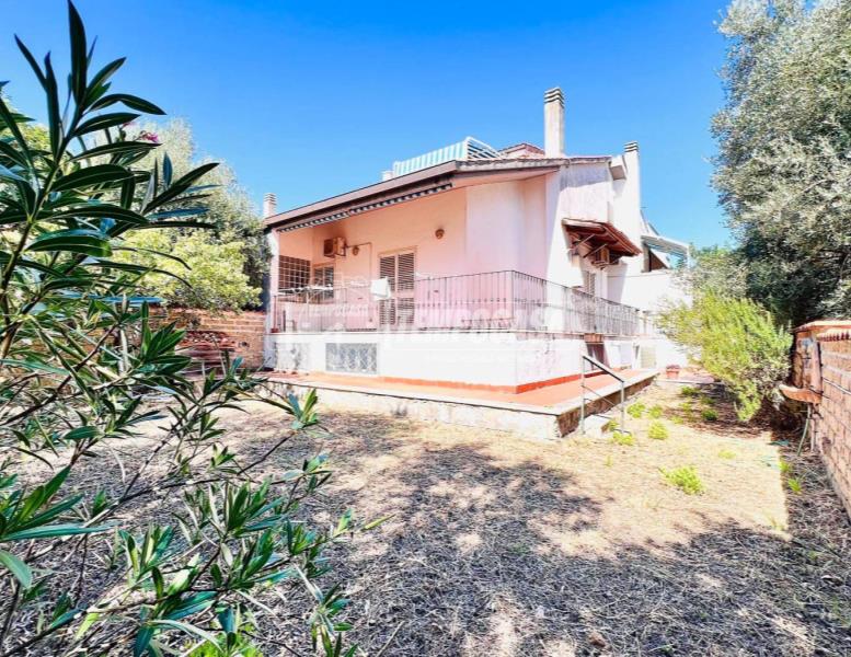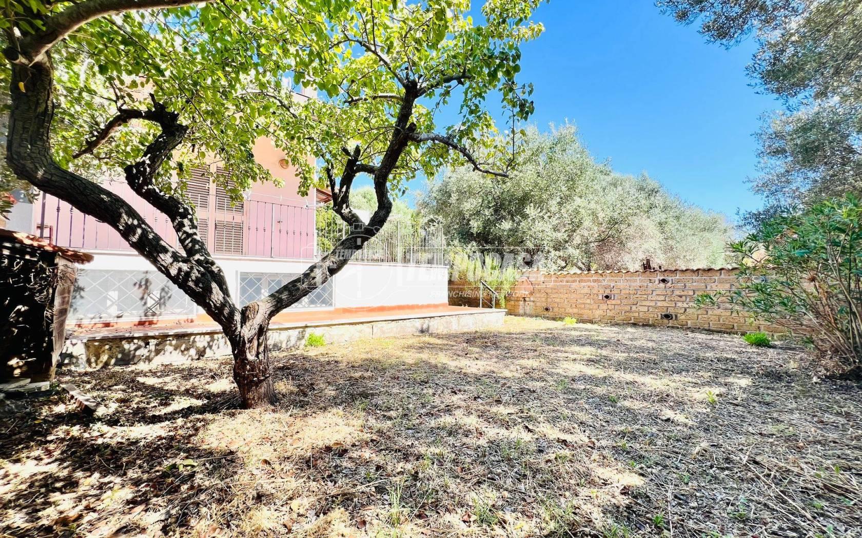 Porzione di Trifamiliare Via Terme di Traiano con 3 camere 2 bagni giardino angolare cosi composta PS: salone doppio con uscita sul giardino angolare di 180 mq 2 camere da letto bagno completo finestrato con doccia e 2 ampi ripostigli, Predisposizione per camino (canna fumaria già presente). P1 : salone con cucina a vista con uscita sull'ampio patio di 80mq una camera da letto matrimoniale sempre con uscita sul terrazzo e bagno. La villa si presenta in ottime condizioni ed è anche molto luminosa perchè ha una visuale libera davanti inoltre è termoautonoma, climatizzata, dotata di zanzariere e con possibilità di parcheggio all'interno del cancello fino a 3 auto.