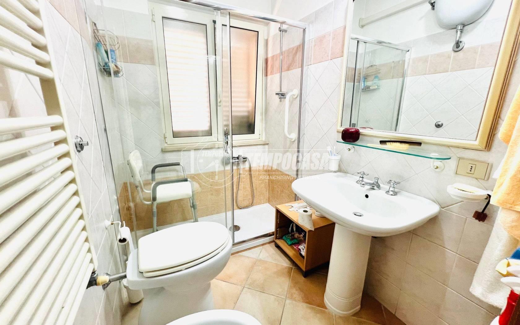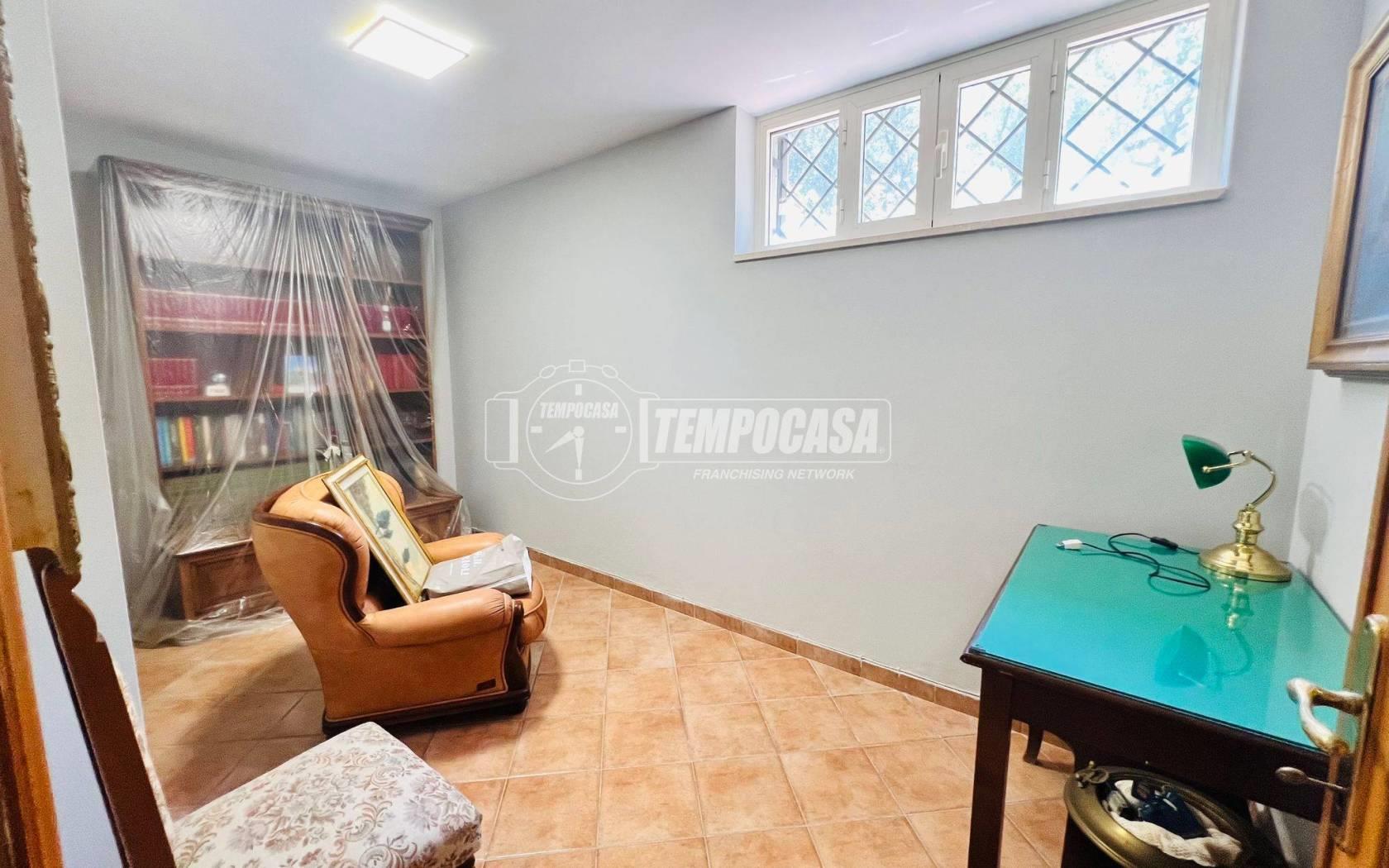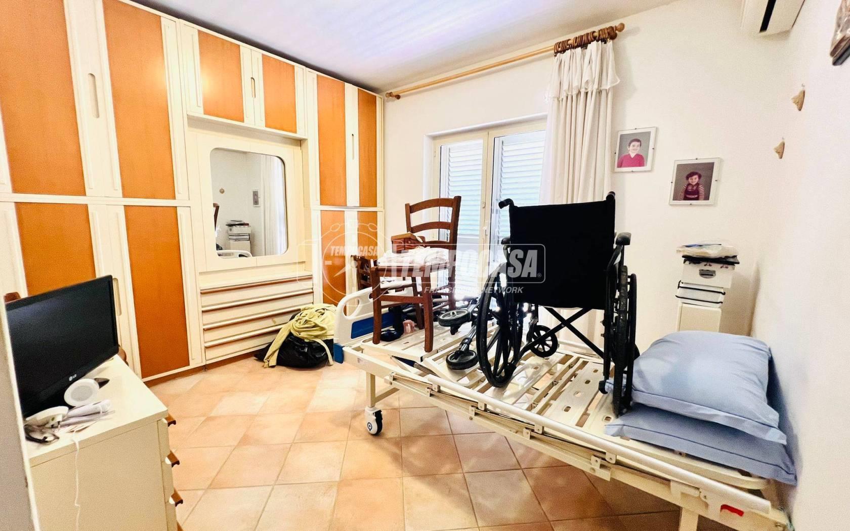 Porzione di Trifamiliare Via Terme di Traiano con 3 camere 2 bagni giardino angolare cosi composta PS: salone doppio con uscita sul giardino angolare di 180 mq 2 camere da letto bagno completo finestrato con doccia e 2 ampi ripostigli, Predisposizione per camino (canna fumaria già presente). P1 : salone con cucina a vista con uscita sull'ampio patio di 80mq una camera da letto matrimoniale sempre con uscita sul terrazzo e bagno. La villa si presenta in ottime condizioni ed è anche molto luminosa perchè ha una visuale libera davanti inoltre è termoautonoma, climatizzata, dotata di zanzariere e con possibilità di parcheggio all'interno del cancello fino a 3 auto.