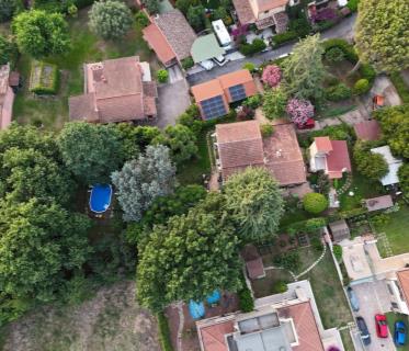 La porzione di villa ha due ingressi indipendenti e si presta perfettamente per una divisione per due nuclei familiari.