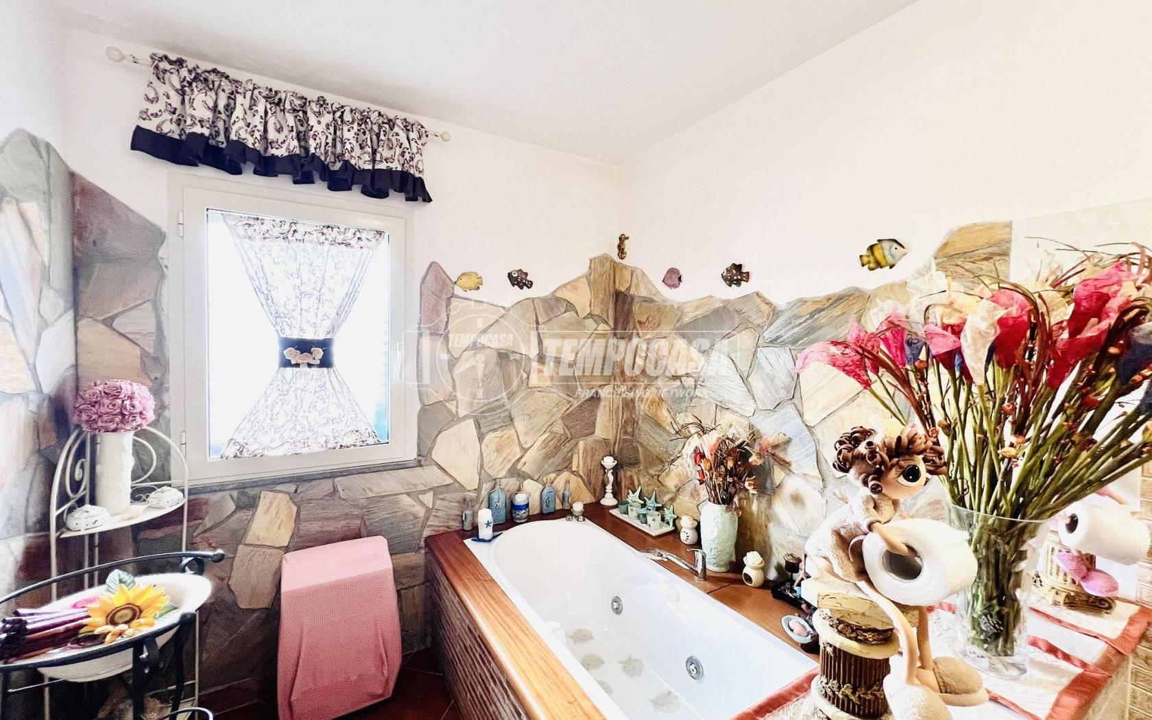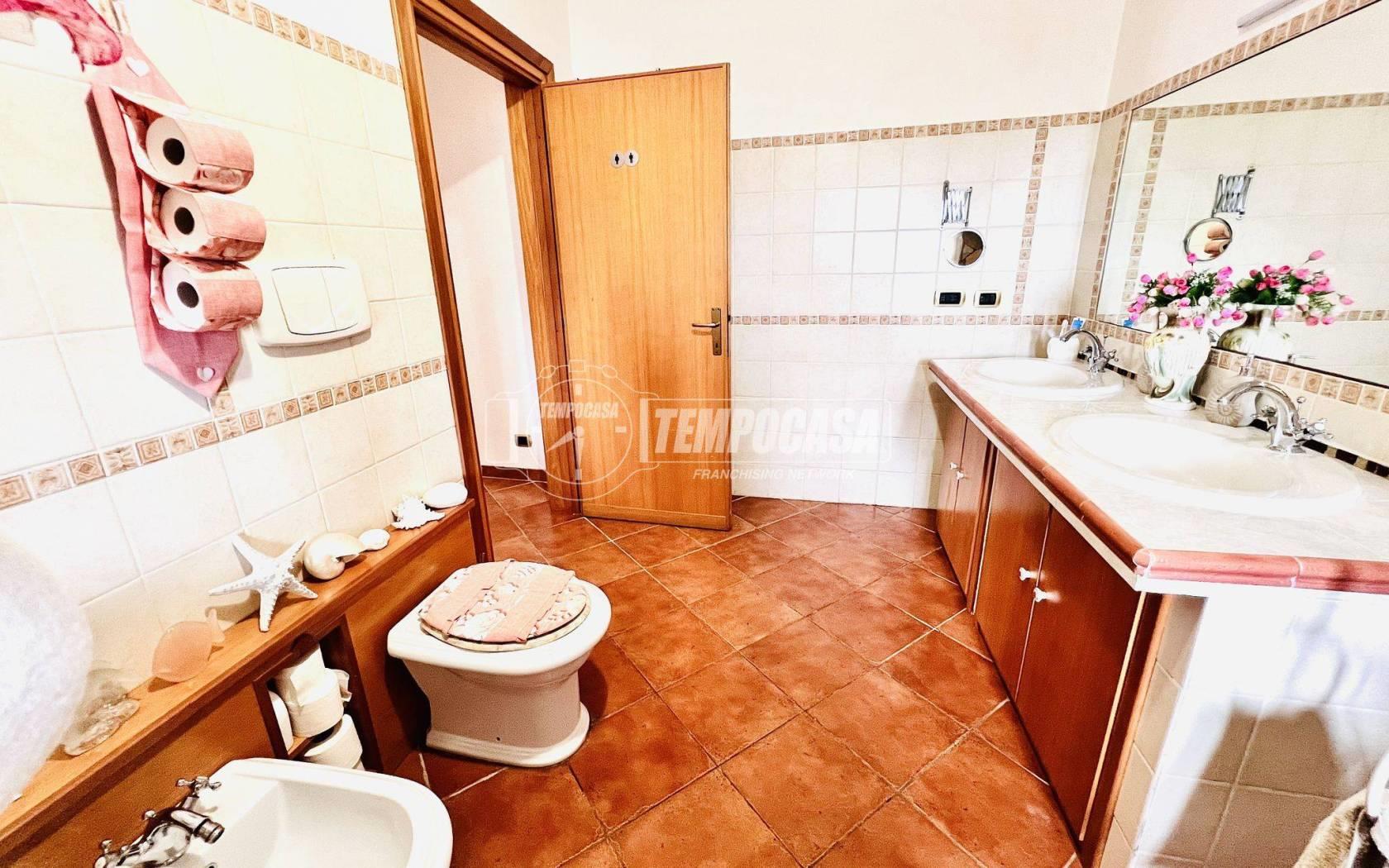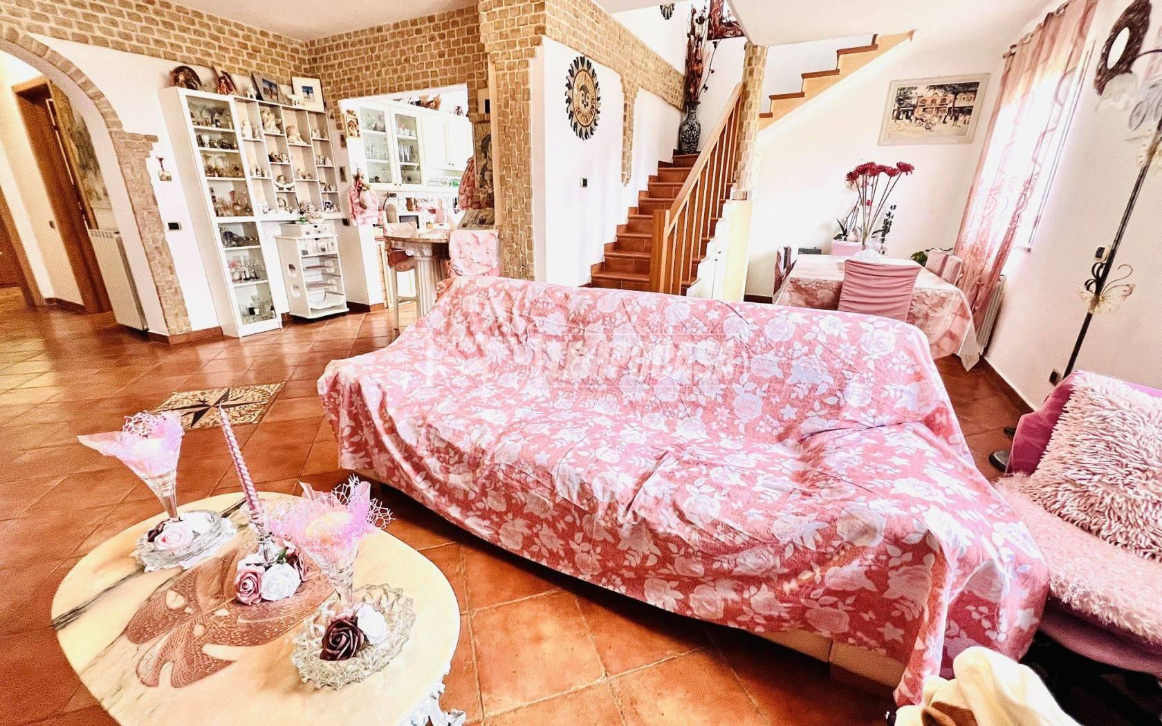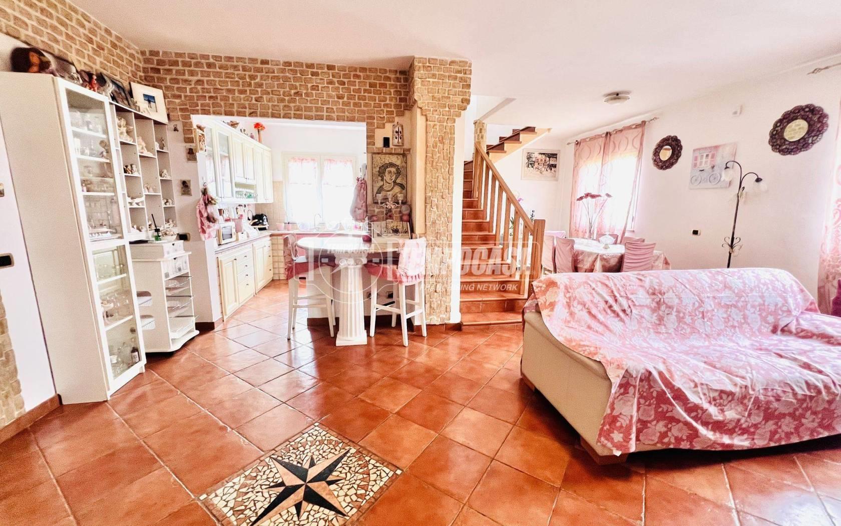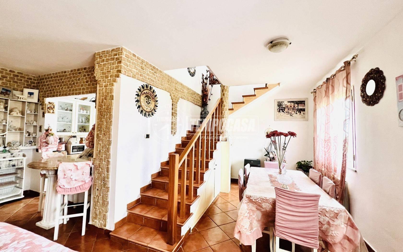 Porzione di trifamiliare su due livelli di 155mq con patio e giardino vista mare così composta: PT: ampio salone doppio, cucina abitabile in muratura, camera da letto e bagno con vasca idromassaggio. Salendo al piano primo da una comoda ed elegante scala abbiamo 2 camere da letto, di cui la camera padronale è dotata di comoda cabina armadio, e bagno completo finestrato con doccia inoltre sempre sullo stesso piano abbiamo un comodo studio finestrato e un terrazzo vista mare. Possibilità di parcheggiare 2 auto inoltre rimane un ampio giardino di 600mq.