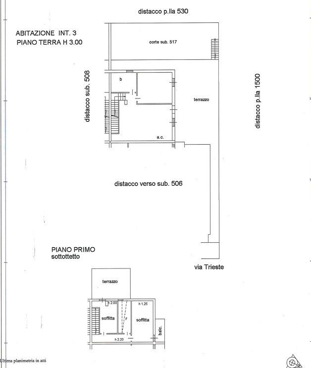 Al piano primo troviamo una mansarda con due camerette, disimpegno, servizio con doccia finestrato, un balcone e un ampio terrazzo.