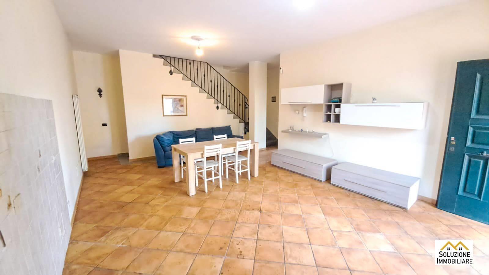 Al piano terra troviamo salone con angolo cottura, grande camera da letto, servizio con finestra, e giardino di mq 150 in parte terrazzato.