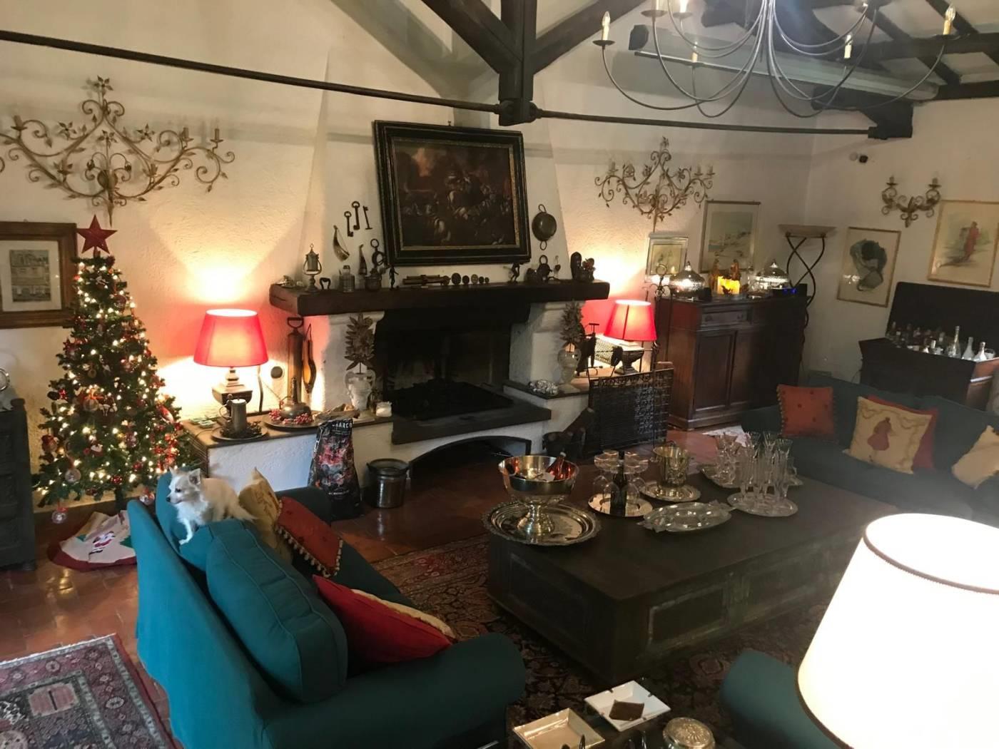 • un imponente salone di rappresentanza con camino, con doppia uscita sul giardino, che crea un meraviglioso continuum tra interno ed esterno.