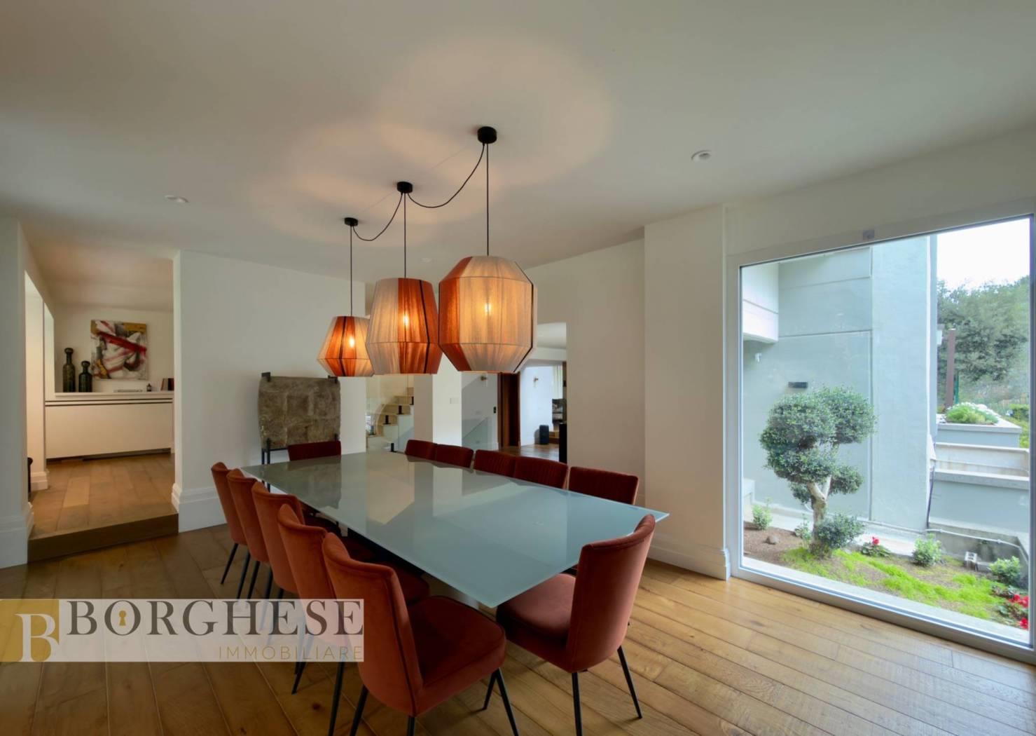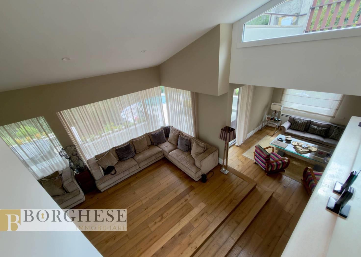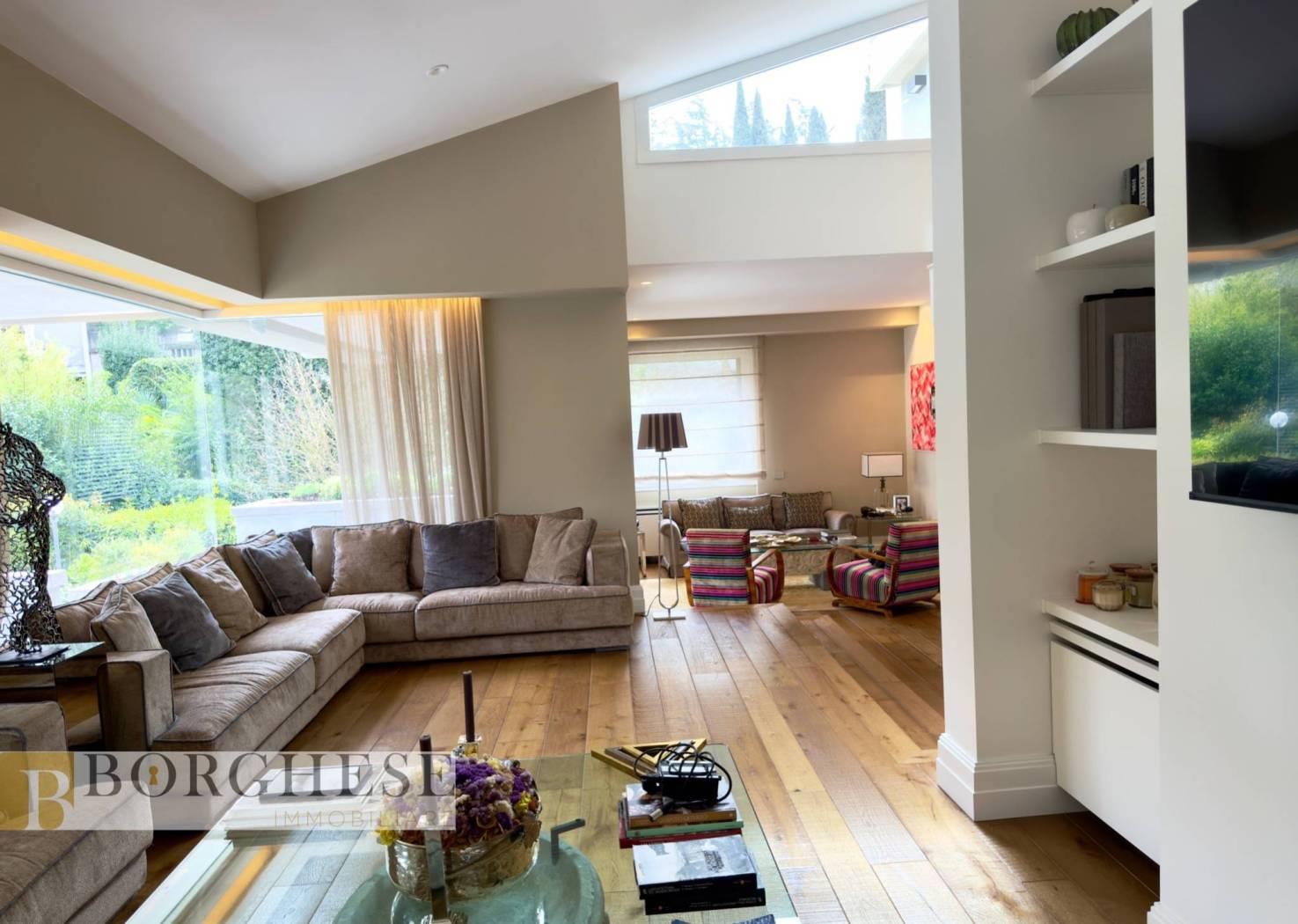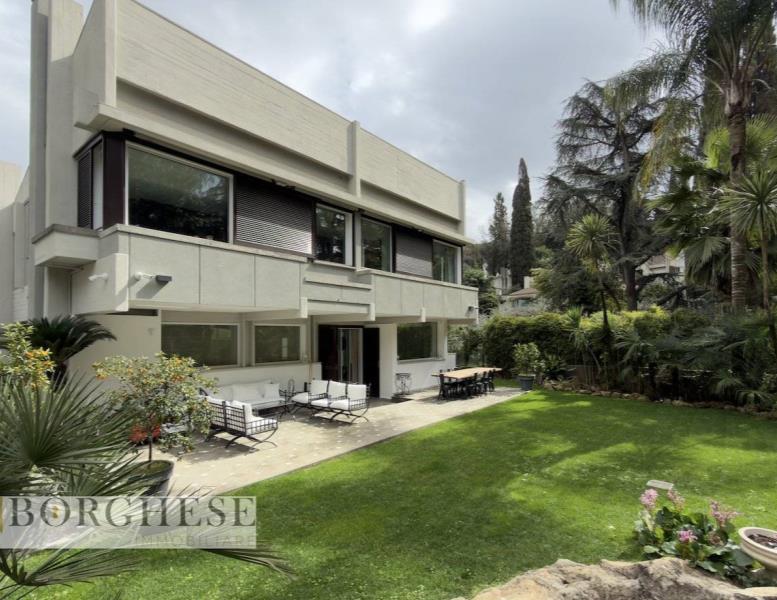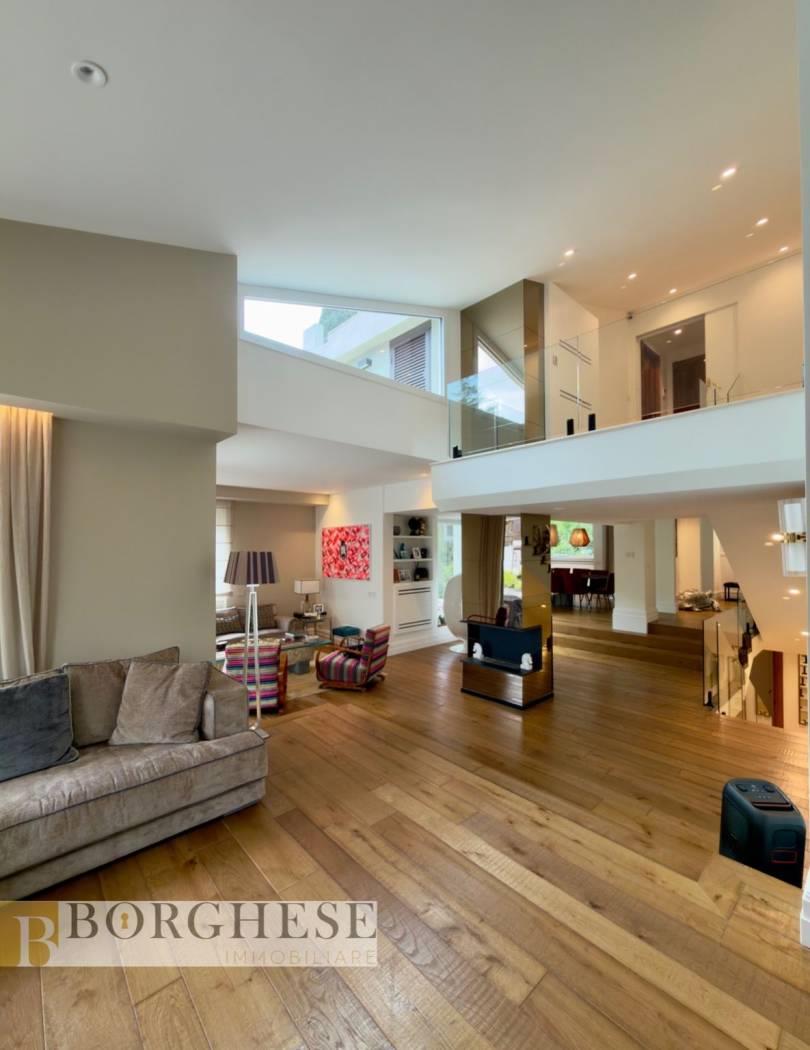 All’interno di un esclusivo comprensorio con servizio di portineria, straordinaria villa di circa 780 mq interni, distribuita su quattro livelli serviti da ascensore, circondata da splendidi spazi esterni e dotata di ogni comfort.