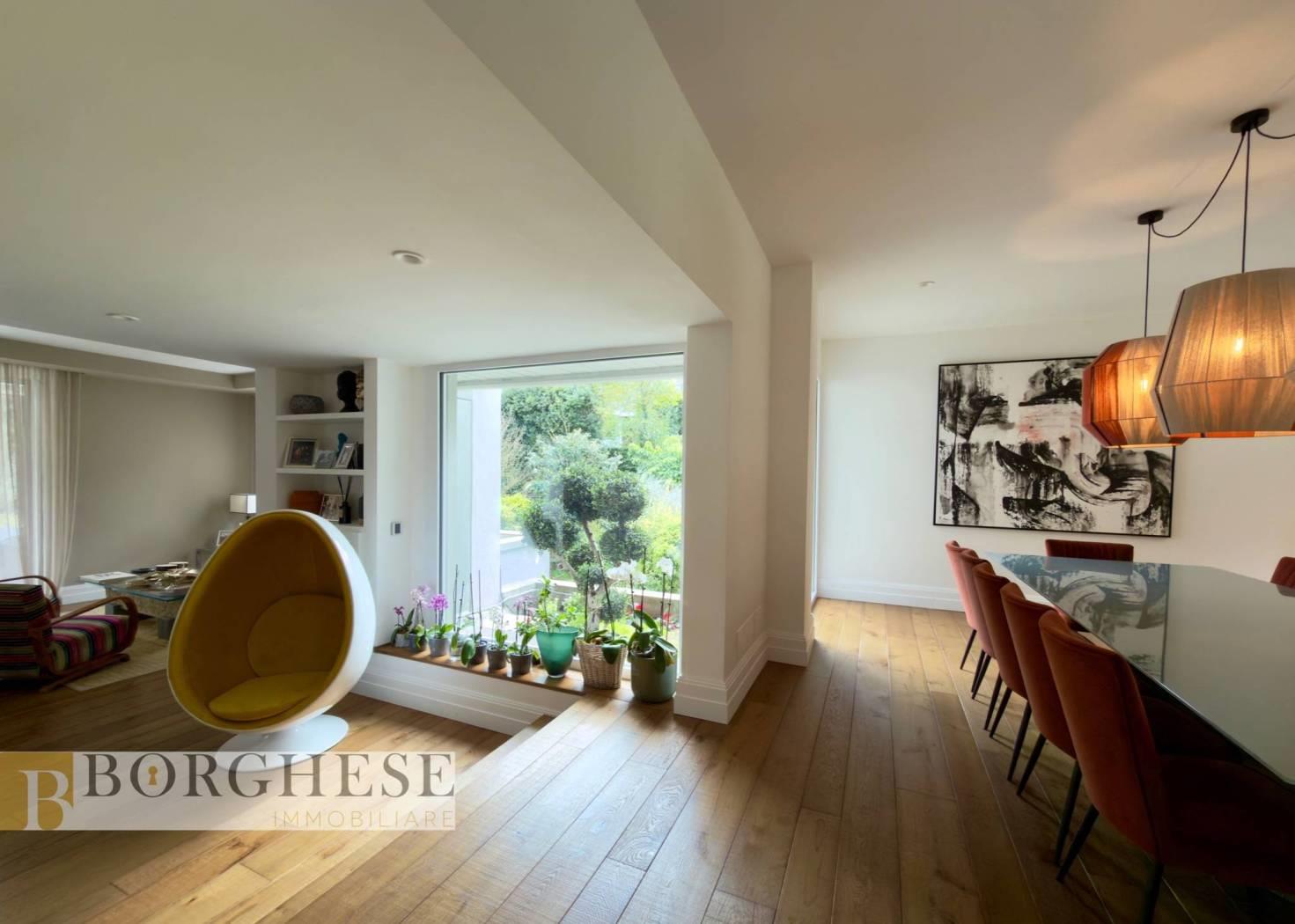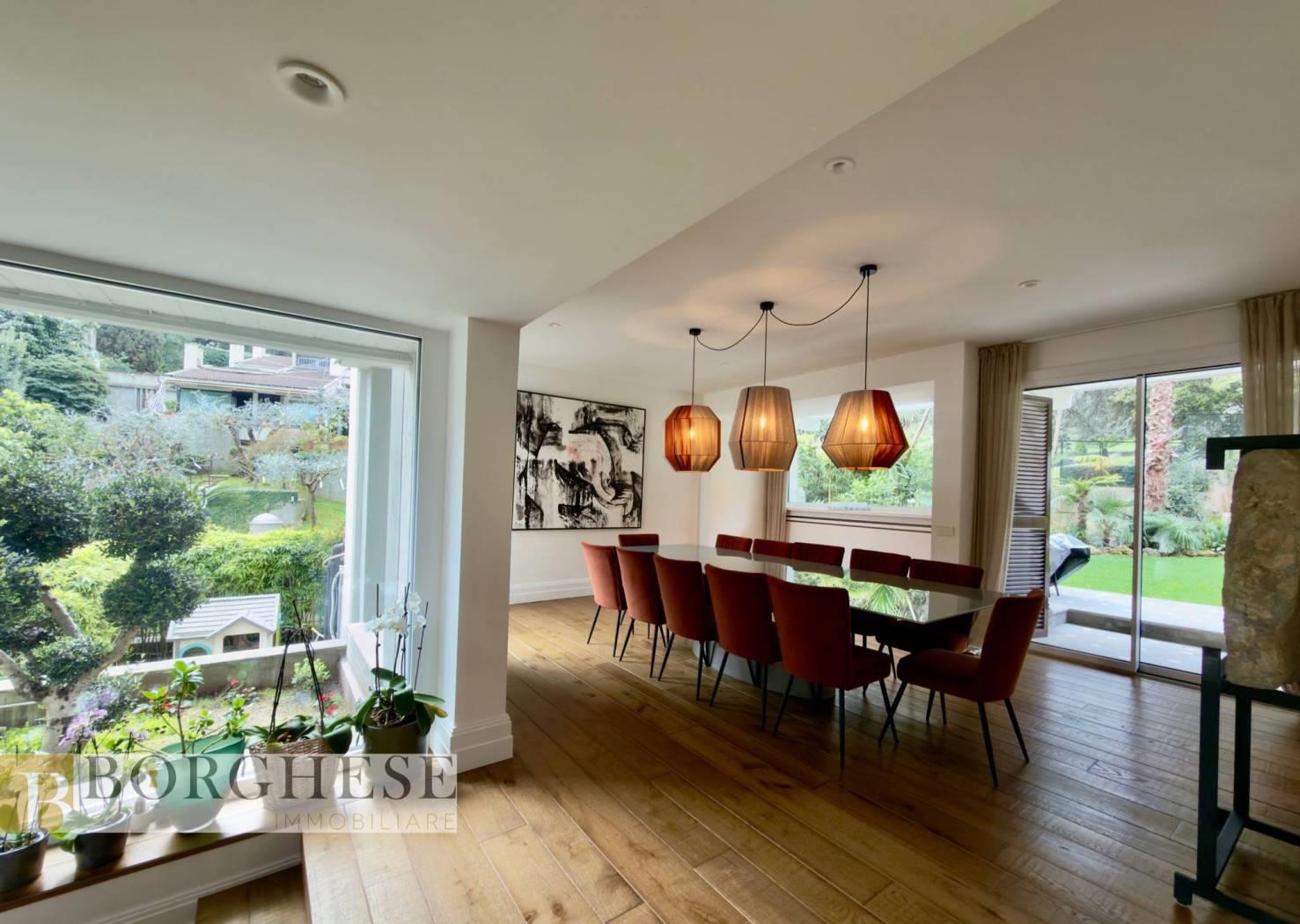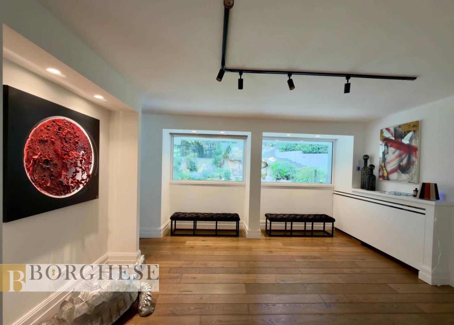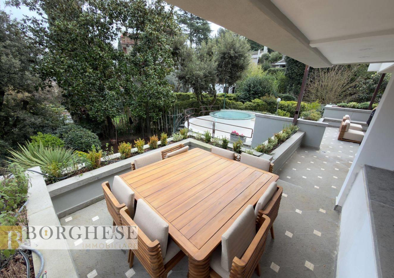 All’interno di un esclusivo comprensorio con servizio di portineria, straordinaria villa di circa 780 mq interni, distribuita su quattro livelli serviti da ascensore, circondata da splendidi spazi esterni e dotata di ogni comfort.