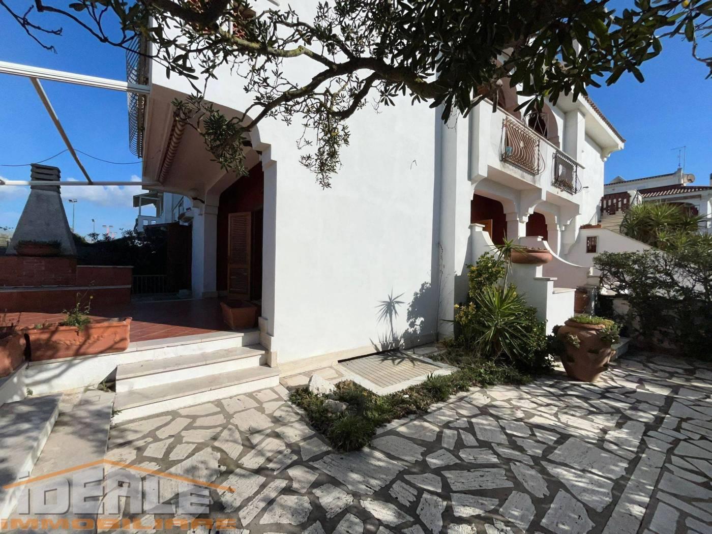 RESIDENCE SABBIE D'ORO. Proponiamo in vendita all'interno del residence Sabbie D'Oro, in contesto elegante , a pochi passi dalla spiaggia , VILLA su tre livelli e taverna. L'immobile è composto da luminosa zona giorno con camino , cucina abitabile, cameretta e bagno al piano terra, da 2 camere matrimoniali , 2 spaziose camerette e bagno al piano primo con sfogo sui balconi VISTA MARE , e da camera con bagno al piano mansarda, con ampio terrazzo VISTA MARE ! Completa la proprietà taverna con camino e angolo cottura e cantina, con accesso dall'esterno. Giardino angolare con barbecue e forno . Il residence gode di un ambiente ricercato, con servizio di guardiania H24, campi sportivi, servizi ristoro, e, già compresa nella quota, l'uso esclusivo di ombrellone con lettino e sdraio in spiaggia privata. Classe energetica g. € 235.000