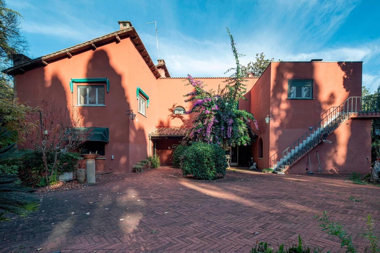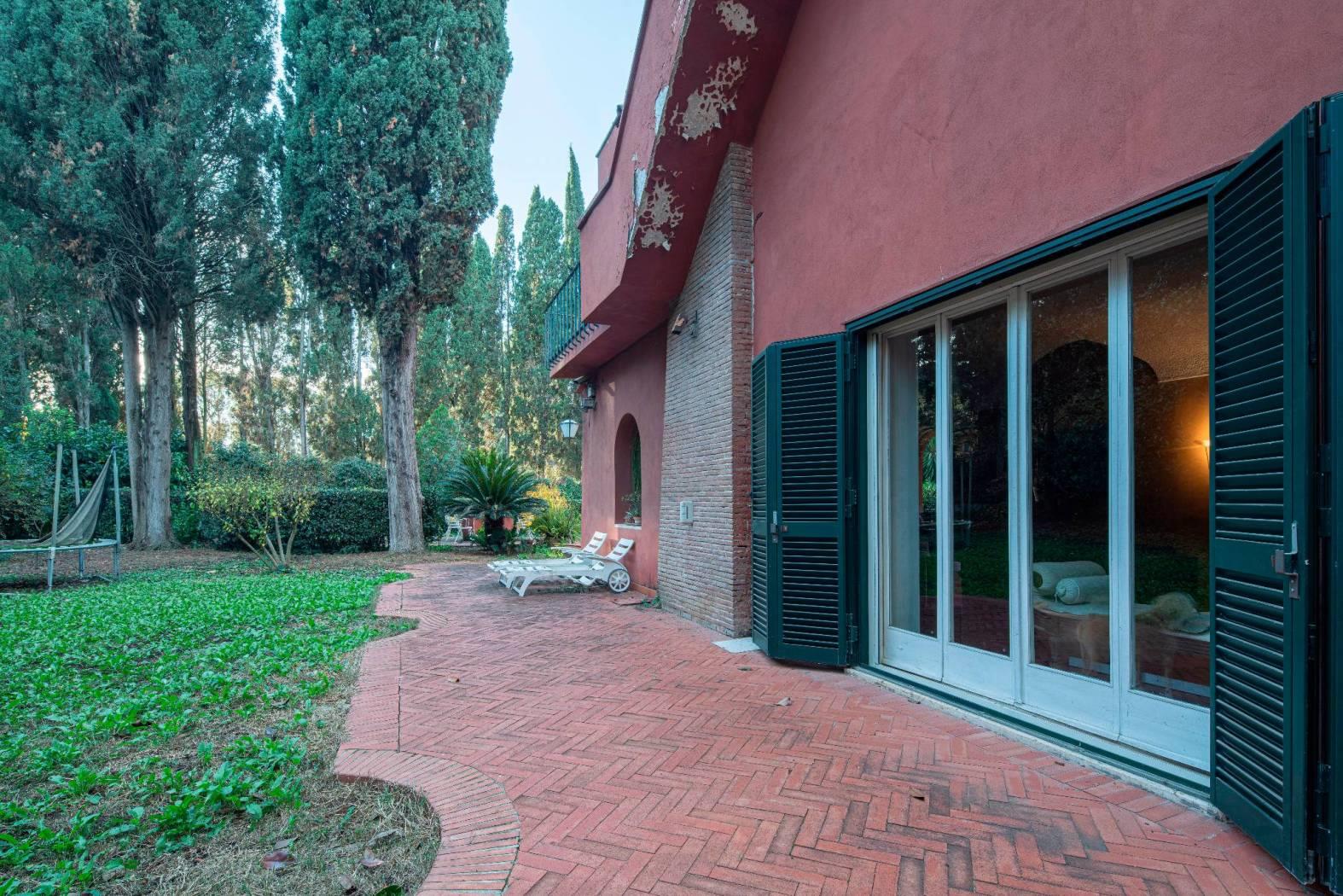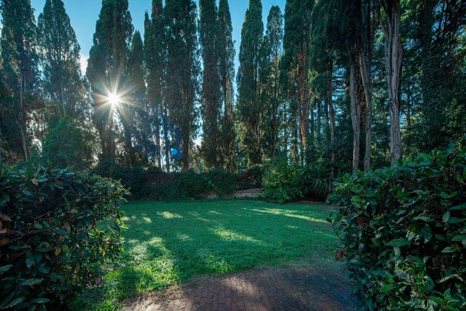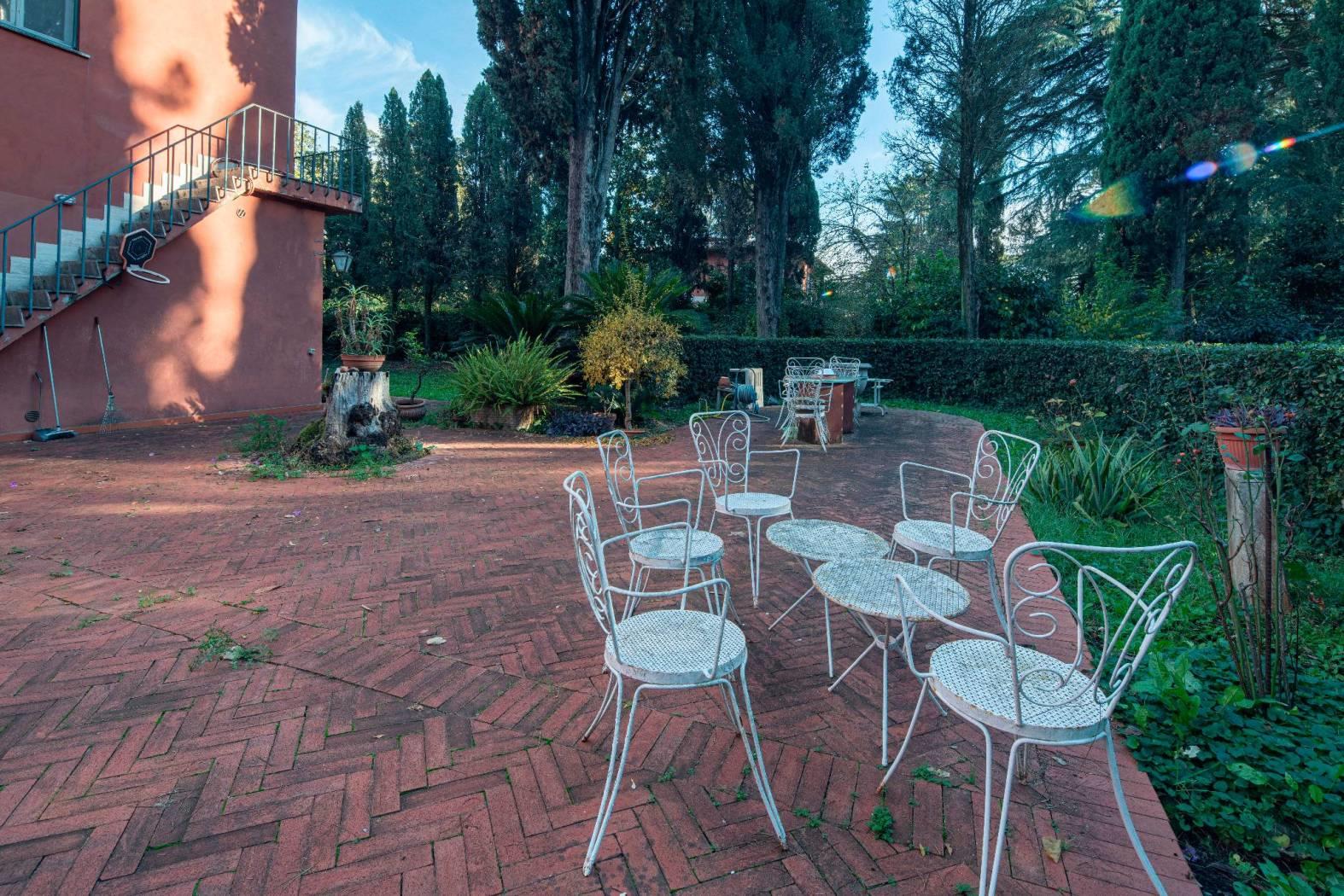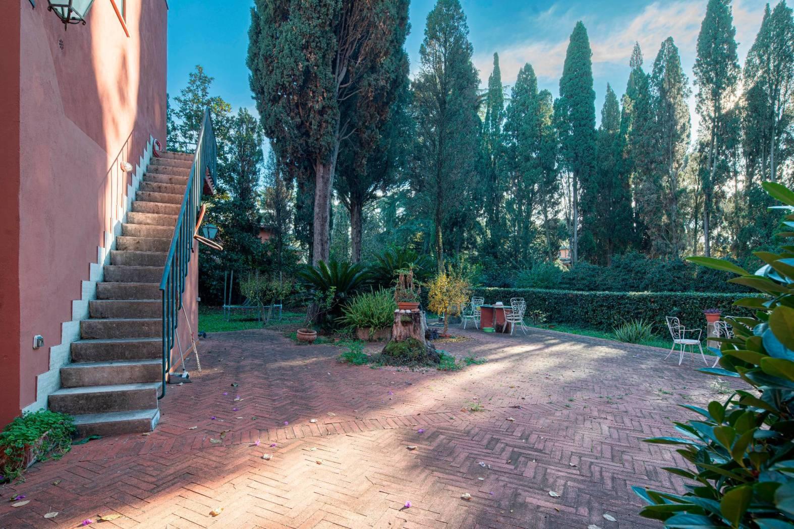 La villa si sviluppa su 550 mq distribuiti su tre livelli, immersa in un maestoso parco privato di 2.100 mq, ricco di alberi secolari, vialetti, zone d’ombra e ampi spazi dedicati alla convivialità. Completa la proprietà una dependance indipendente di 96 mq, ideale per ospiti o personale di servizio.