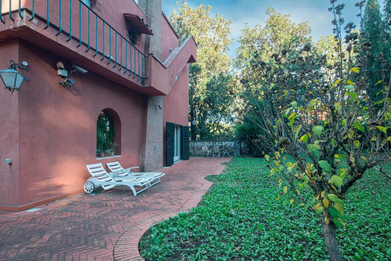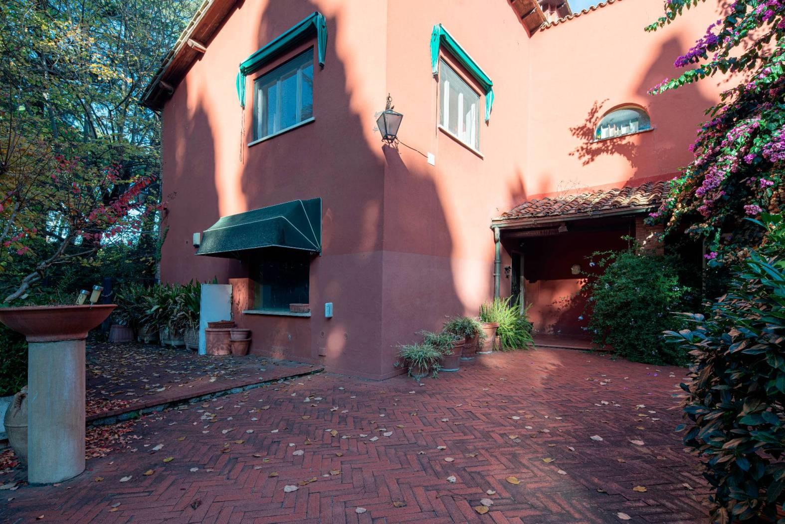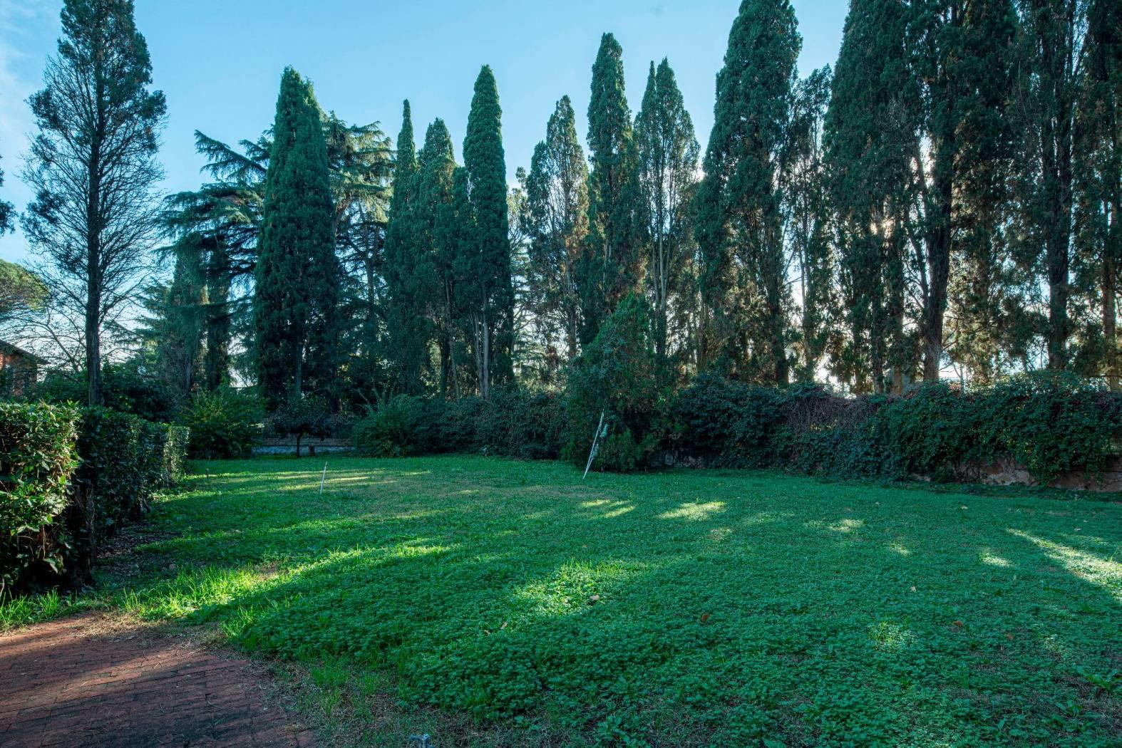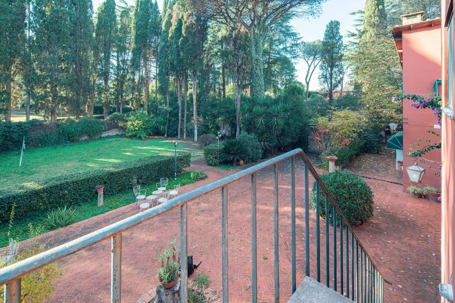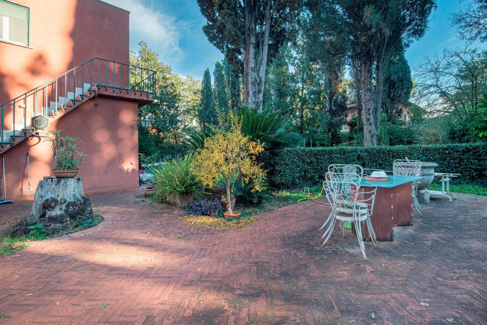 La villa si sviluppa su 550 mq distribuiti su tre livelli, immersa in un maestoso parco privato di 2.100 mq, ricco di alberi secolari, vialetti, zone d’ombra e ampi spazi dedicati alla convivialità. Completa la proprietà una dependance indipendente di 96 mq, ideale per ospiti o personale di servizio.