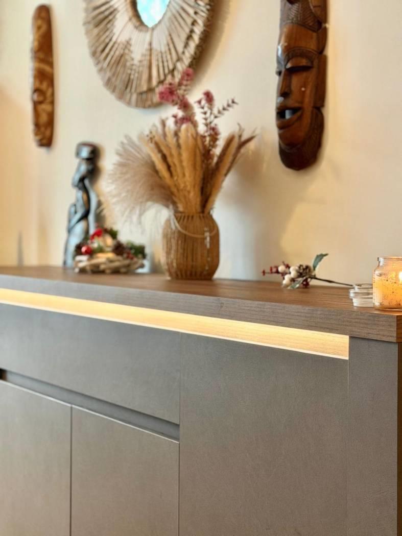 Piano piano terra/S1 : una zona living, una cucina abitabile con affaccio sul soggiorno ed un bagno. Sullo stesso livello è presente una corte esterna pavimentata, utilizzabile anche come posto auto interno.
