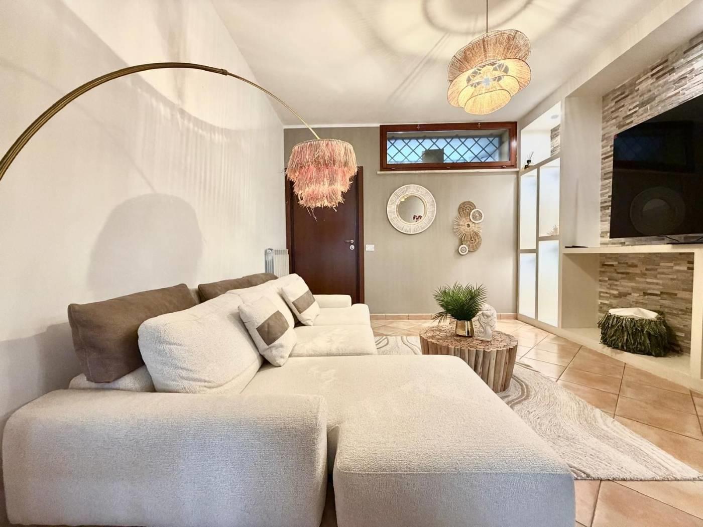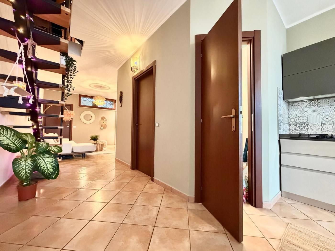 Piano primo/terra: una luminosa ed accogliente camera da letto matrimoniale dotata di balconcino privato, un bagno, una funzionale dispensa/ripostiglio ed una spaziosa cabina armadio. Dal locale appena descritto si accede ad un ulteriore spazio esterno, attualmente pavimentato ma con possibilità di essere ripristinato come giardino.