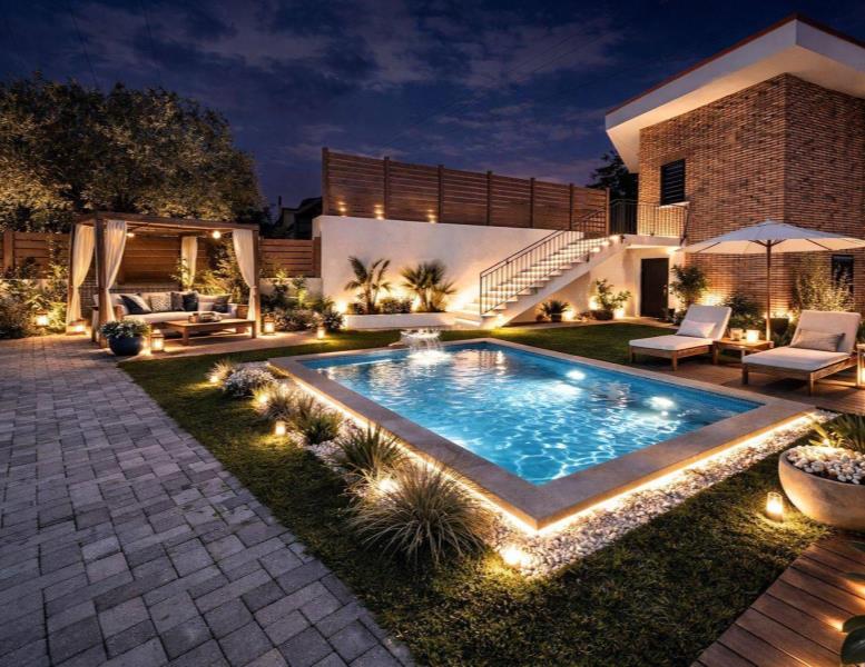 La proprietà è circondata da circa 330 mq di corte esclusiva, con superfici esterne sia pavimentate sia verdi, che rendono lo spazio perfettamente fruibile per diverse esigenze di utilizzo e relax. Nella parte di terreno è inoltre possibile, su richiesta, realizzare una piscina privata.
