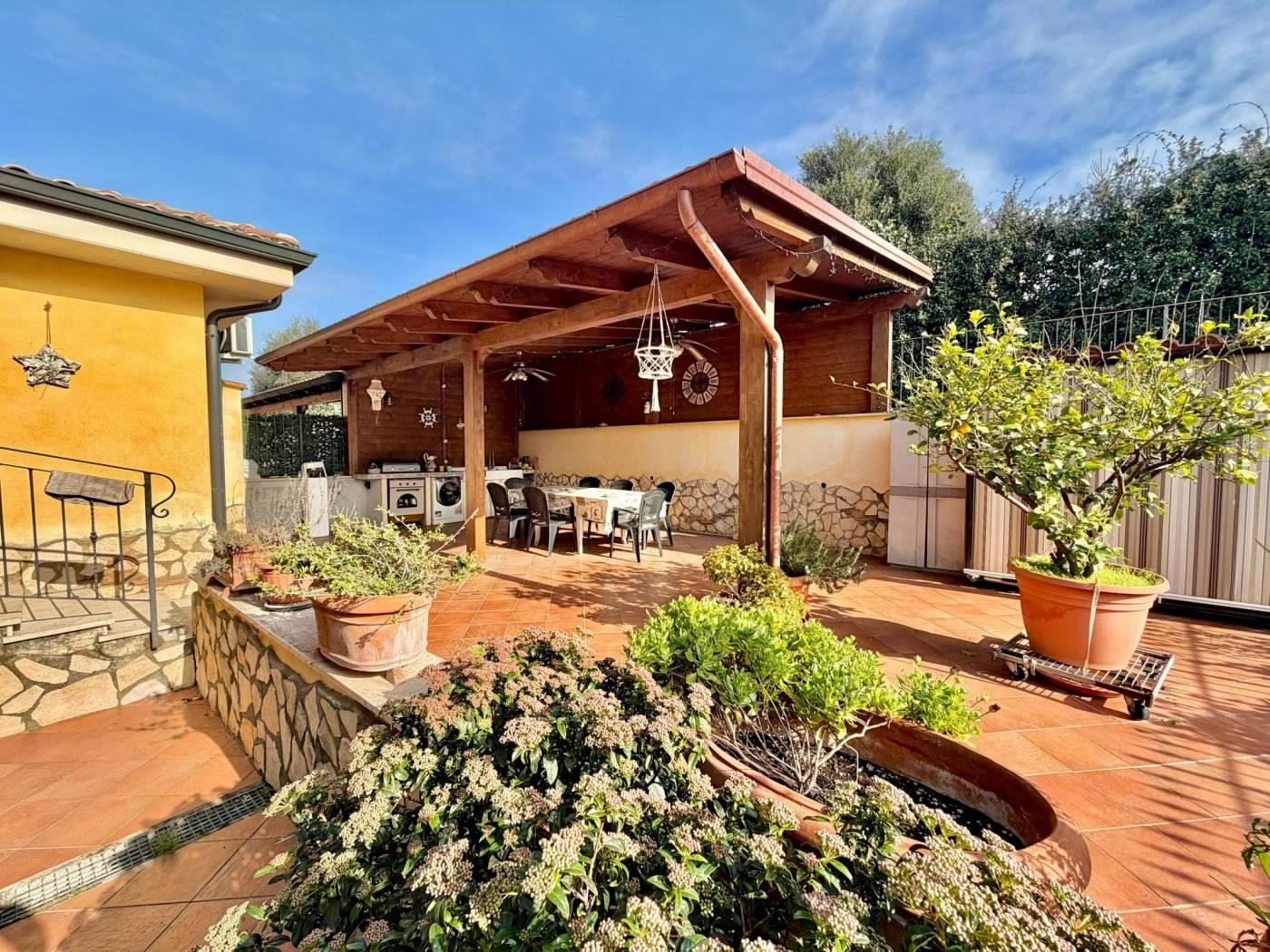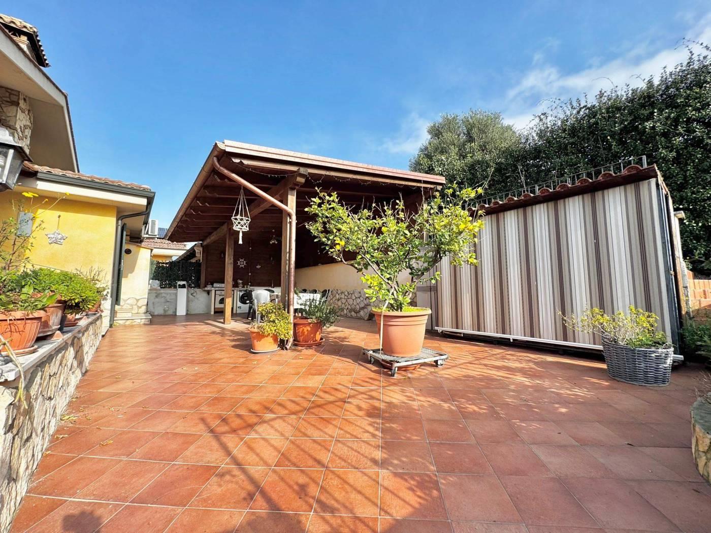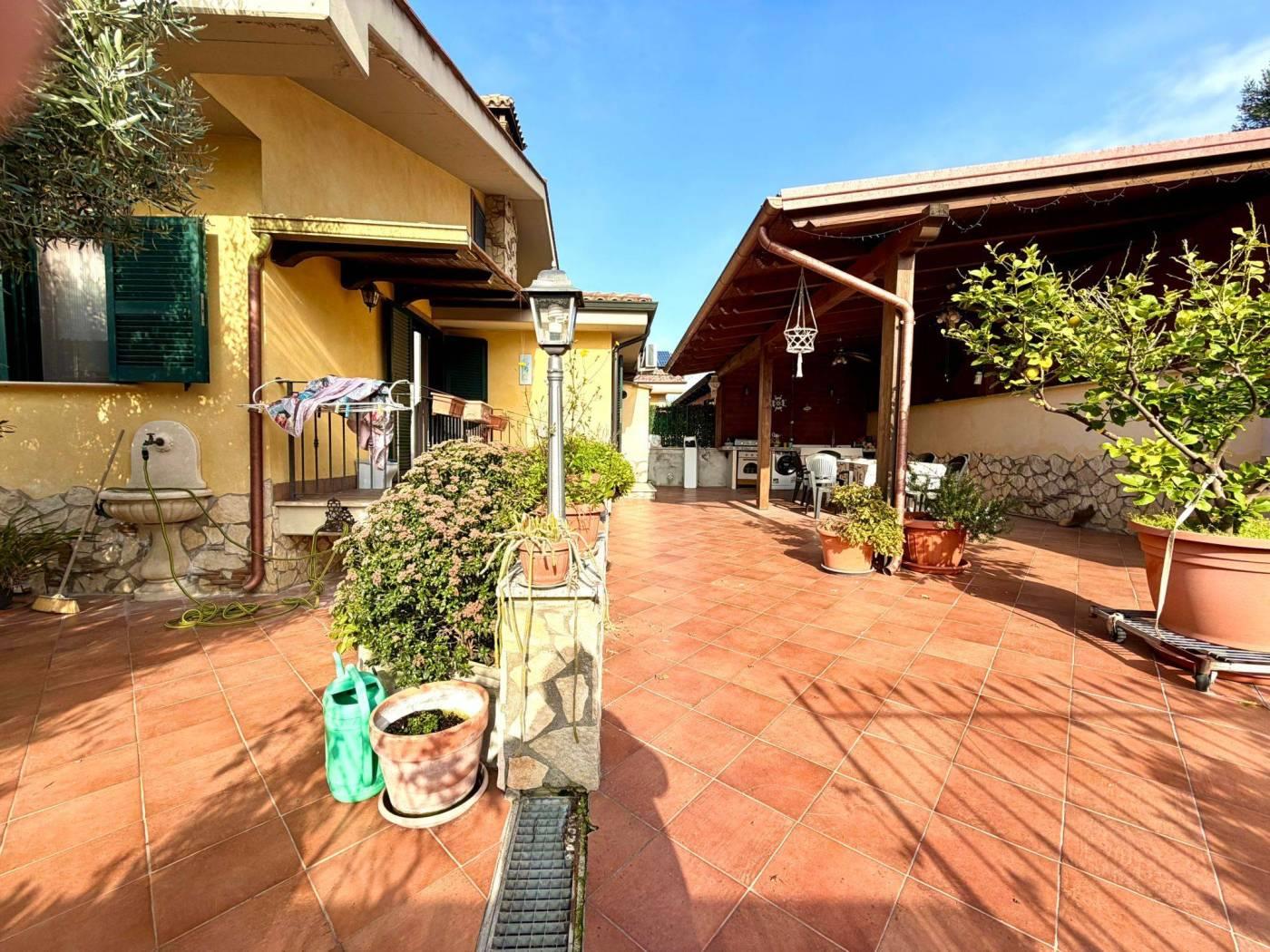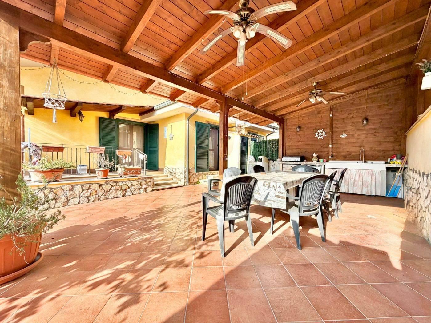 dei residenti e più precisamente in Via Trevi nel Lazio. La corte di pertinenza di circa 150 mq è attualmente prevalentemente pavimentata, soluzione pratica per vivere pienamente gli spazi esterni, ma offre anche la possibilità di essere ripristinata a giardino. Inoltre area esterna appena descritta è arricchita da una pergola in legno con cucina esterna che crea un piacevole ambiente pranzo all'aperto.