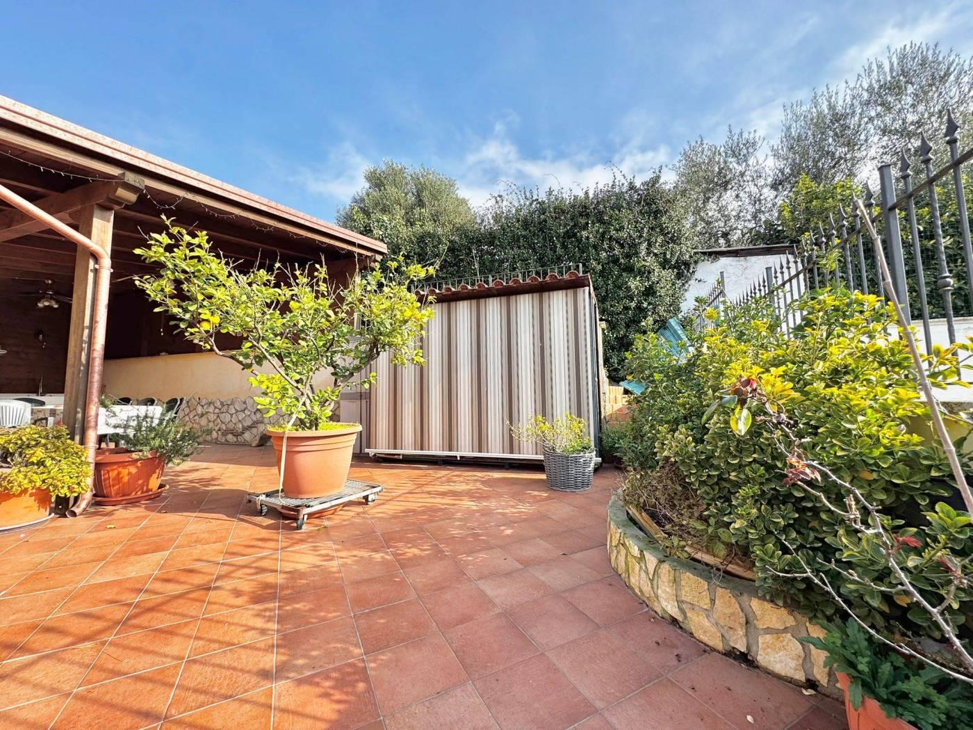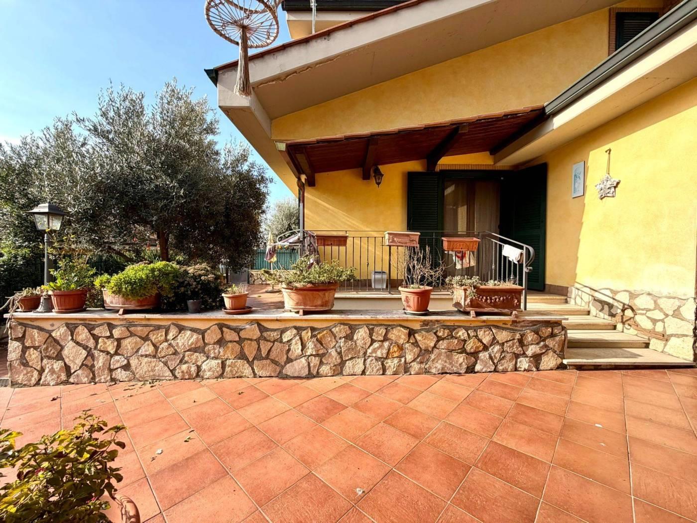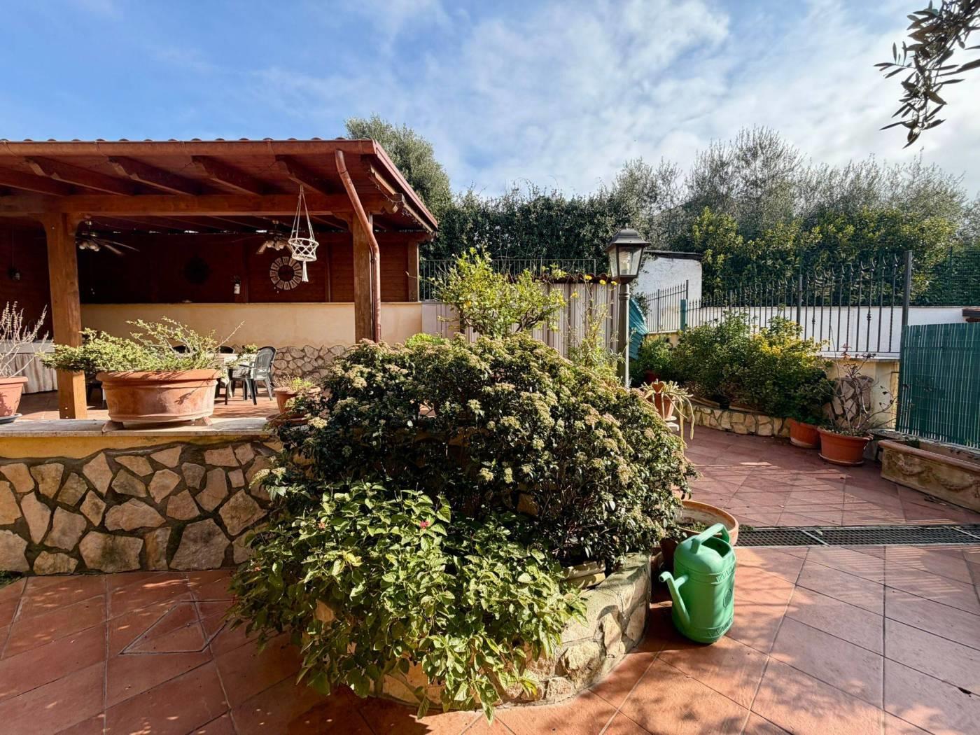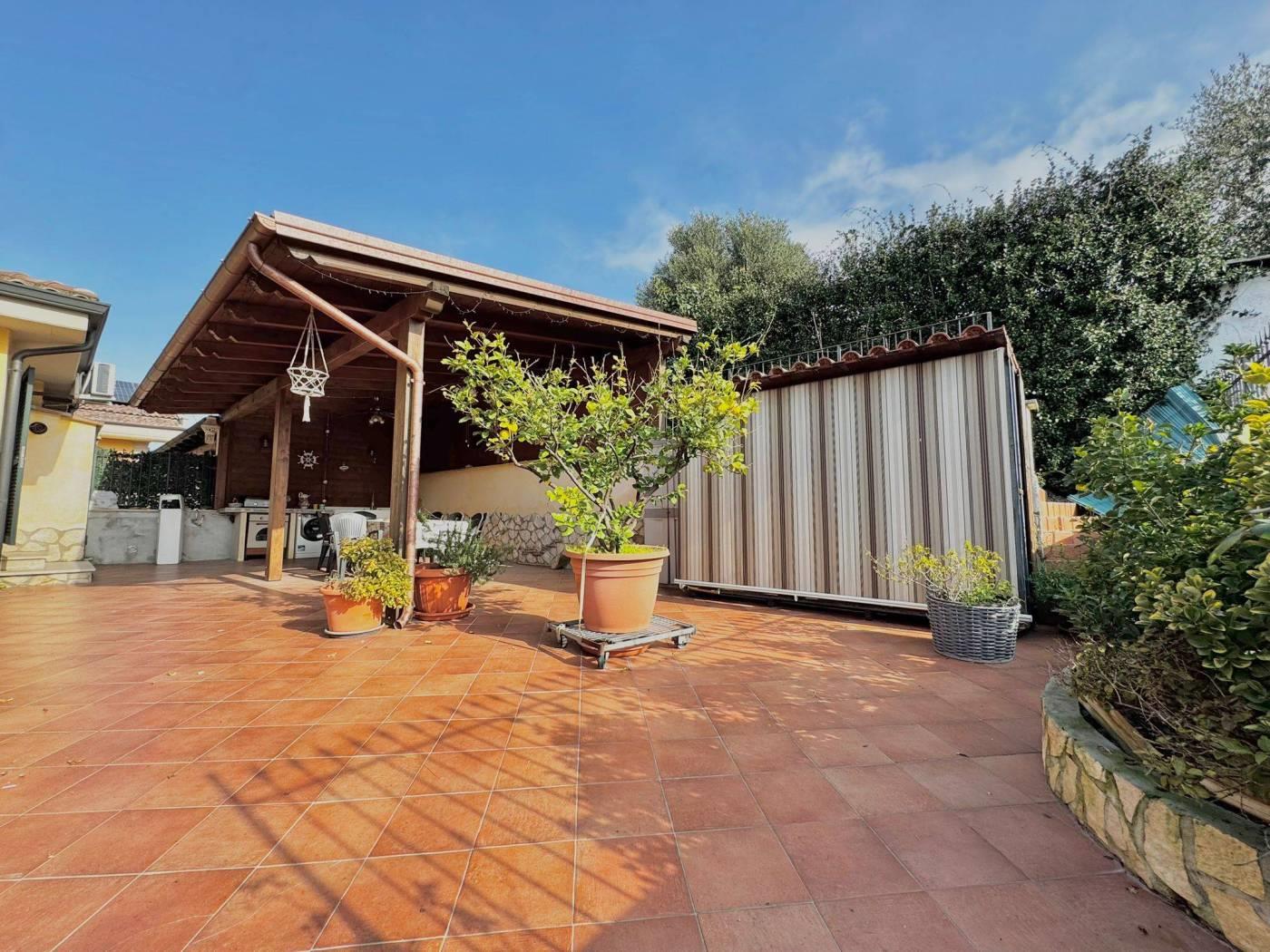 dei residenti e più precisamente in Via Trevi nel Lazio. La corte di pertinenza di circa 150 mq è attualmente prevalentemente pavimentata, soluzione pratica per vivere pienamente gli spazi esterni, ma offre anche la possibilità di essere ripristinata a giardino. Inoltre area esterna appena descritta è arricchita da una pergola in legno con cucina esterna che crea un piacevole ambiente pranzo all'aperto.
