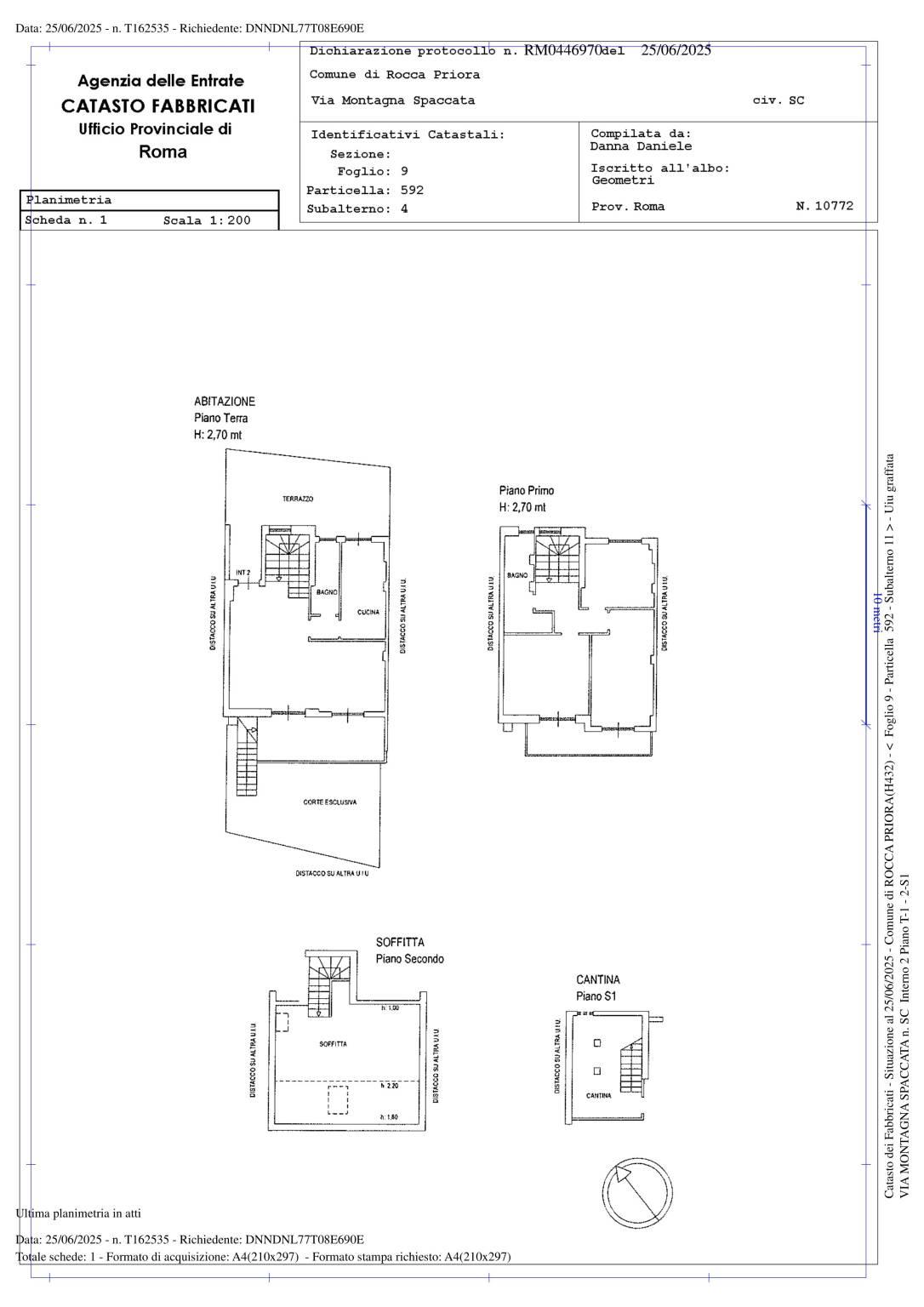L’immobile si sviluppa su tre livelli oltre soffitta: