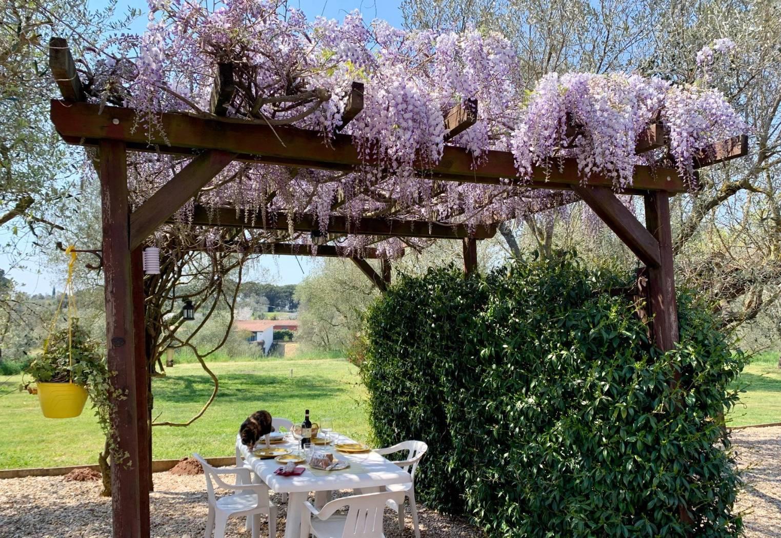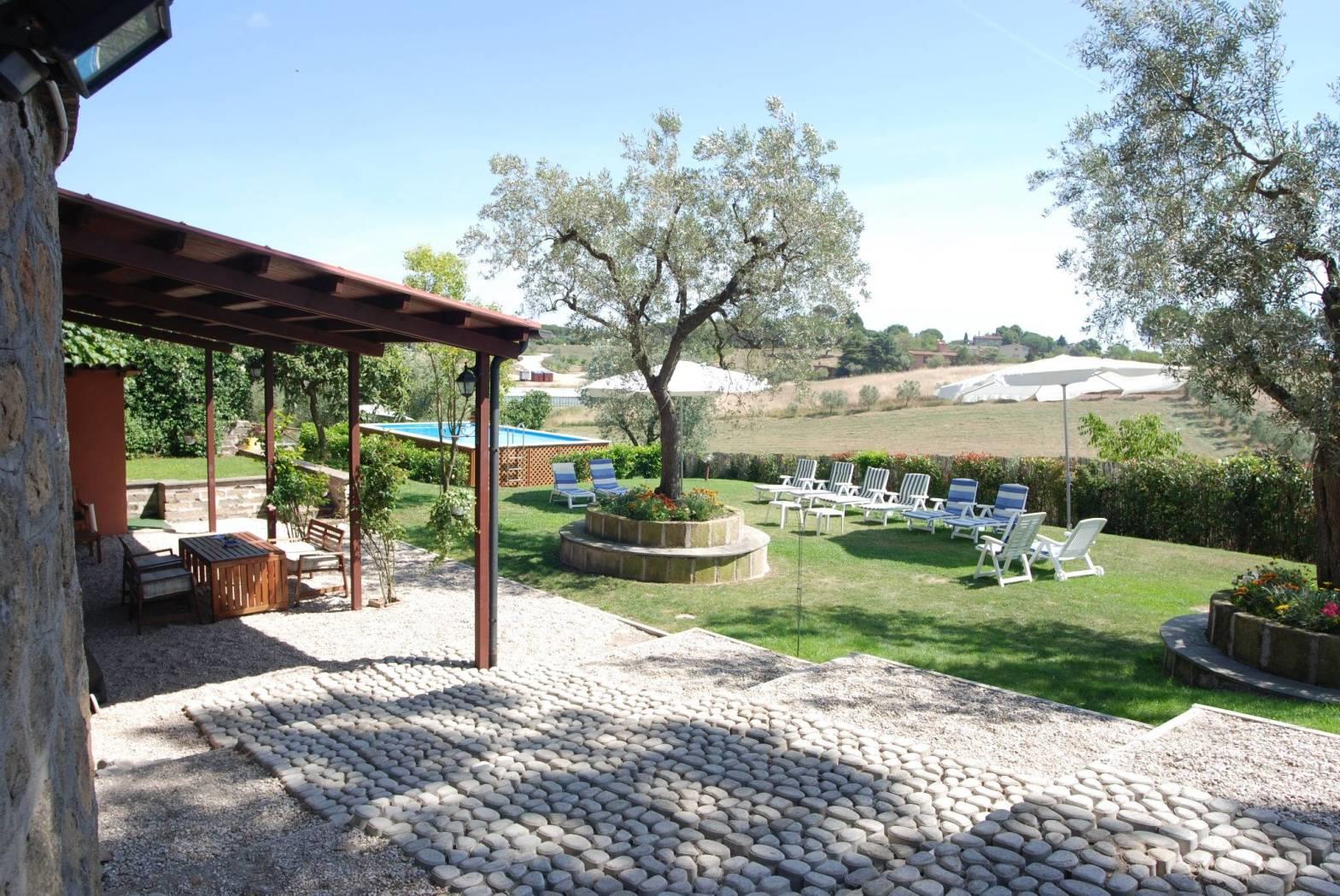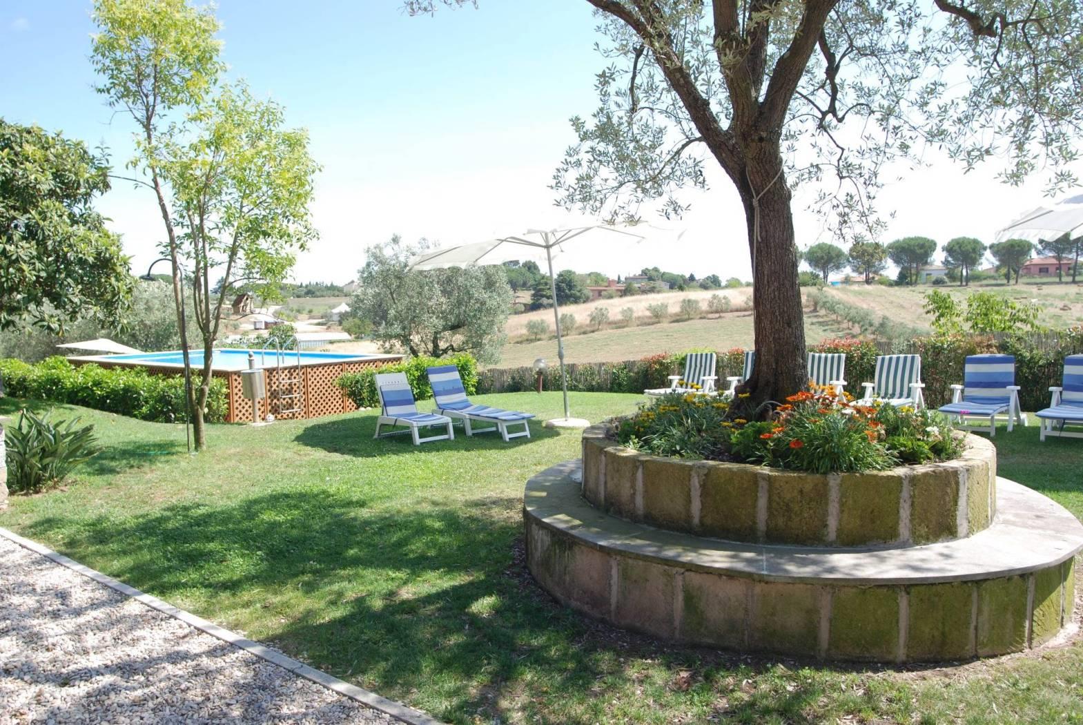 Un ampio giardino pianeggiante, arricchito da ulivi, che rendono unica la proprietà, semplici da mantenere e capaci di offrire la produzione di un olio di qualità, espressione autentica del territorio.