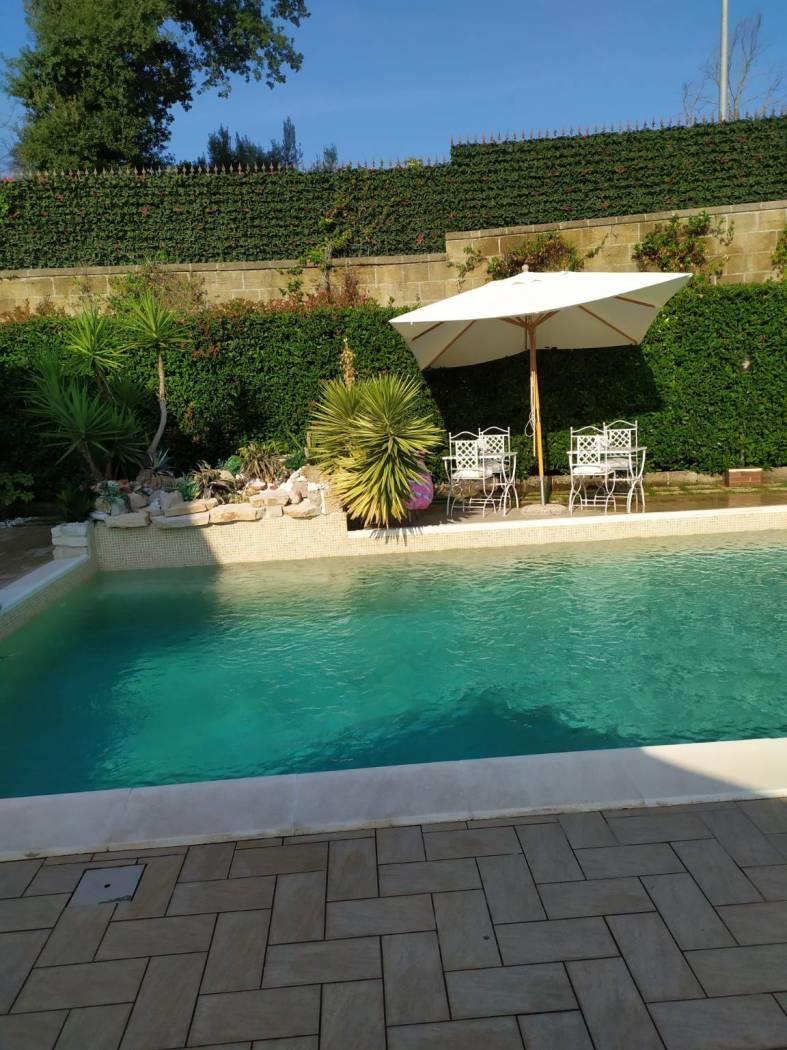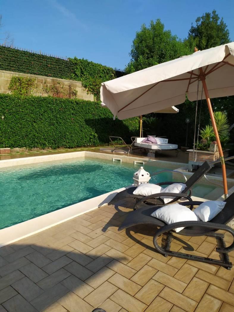 La proprietà è circondata da un meraviglioso giardino, in parte verde e in parte pavimentato, curato nei minimi dettagli. Protagonista assoluta degli spazi esterni è la raffinata piscina con giochi d’acqua, affiancata da una comoda area relax, zona barbecue e uno spazio dedicato a pranzi e cene all’aperto, perfetto per vivere momenti di convivialità in totale privacy.