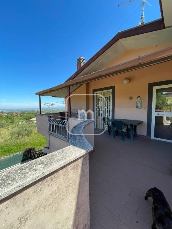 L'immobile si trova a San Cesareo (RM) Via Tende, a pochi km dal casello autostradale, nelle vicinanze del centro commerciale La Noce ed è così composto: P. S. doppio salone con due camini e cucina abitabile con forno a legna, cantina di mq. 50 ca. , bagno, spazio esterno pavimentato con lavanderia di mq 6; P. T. ingresso con soppalco, cucina abitabile (attualmente adibita a studio con cabina armadio), camera matrimoniale con bagno interno, due ampie camerette, balcone perimetrale con giardino; P. P. corriodio, cucina abitabile dalla quale si può accedere ad un terrazzo esterno, ripostiglio, salone con camino, due ampie camere da letto e un bagno.