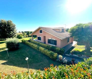 Dall'ingresso del piano terra si entra nella bellissima zona di rappresentanza con un triplo salone con camino ed ampie vetrate che si affaccino su le colline circostanti, sul giardino da dove si scorge la piscina circondato alberi di alto fusto, allo stesso piano troviamo anche con la cucina abitabile con tinello, tre ampie camere, due bagni. Allo stesso piano troviamo un ingresso, guardaroba, balconi e marciapiedi che percorrono il perimetro dell’immobile.