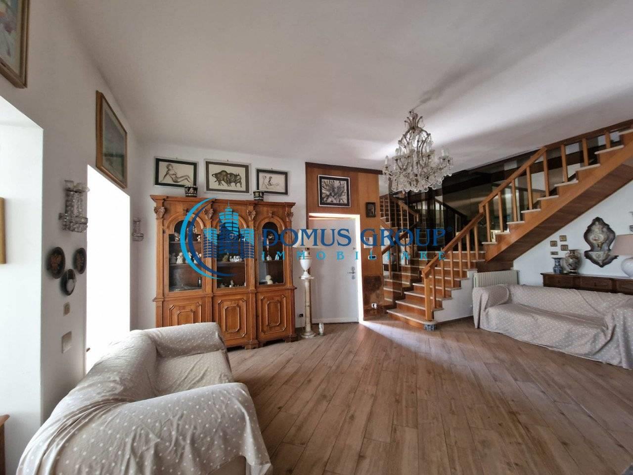 Piano terra: ingresso ampio con camino a vista, soggiorno doppio con secondo camino, stufa a pellet, disimpegno, cucina completamente arredata e abitabile con uscita sul terrazzo antestante, una camera, bagno con vasca e doccia ristrutturato, vano lavanderia e centrale termica (accessibile anche dall’esterno).