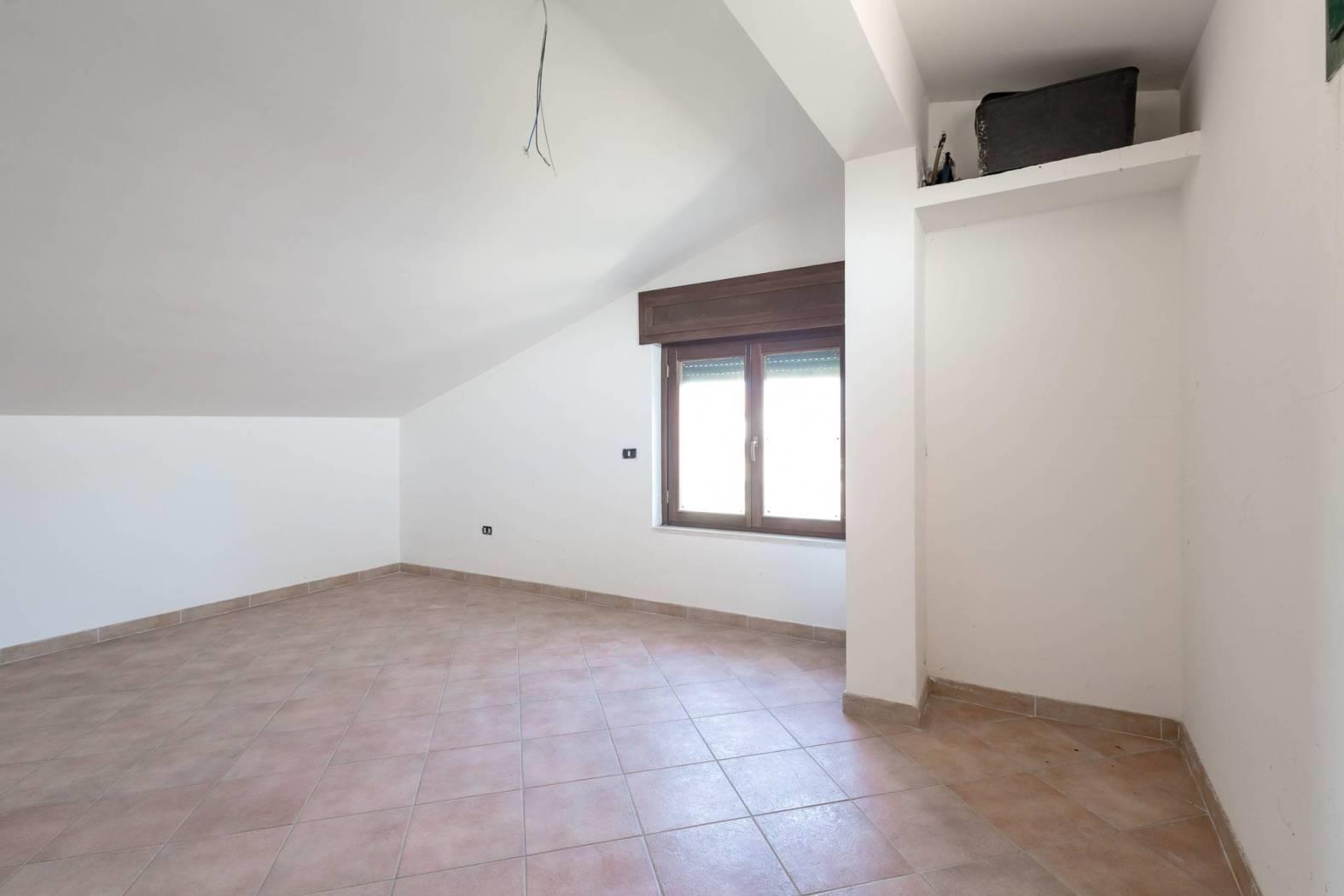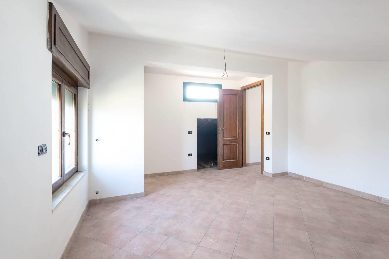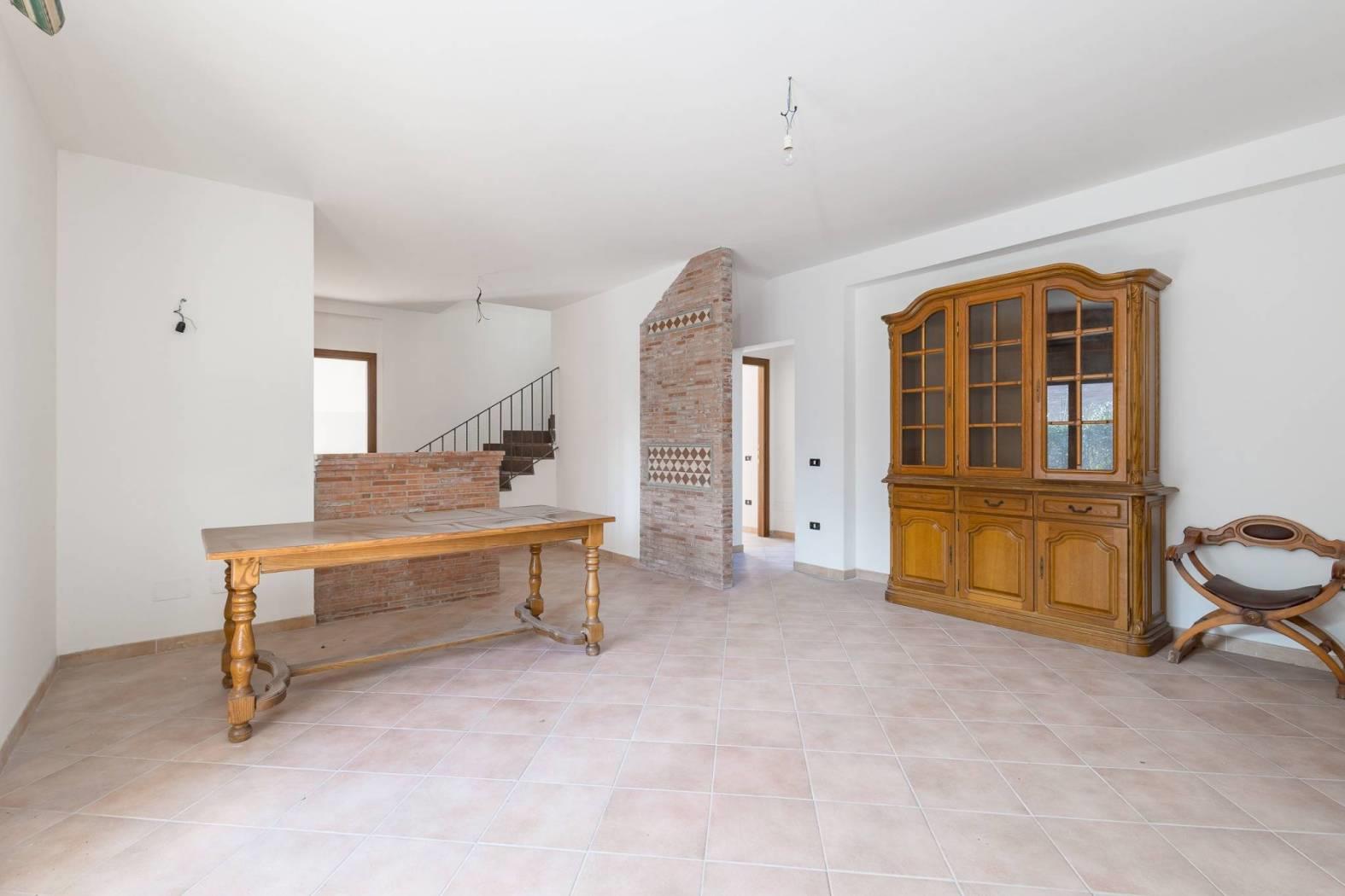 Piano Terra: L'ingresso principale apre su un ampio e luminoso salone con camino, una cucina abitabile, due camere matrimoniali, un bagno con finestra completo di doccia e vasca; allo stesso livello c'è un patio coperto ideale per pranzi all'aperto ed un giardino che circonda la casa. Tramite scala interna, saliamo al Piano Primo che ospita altre due camere da letto mansardate e un secondo servizio con finestra e doccia.