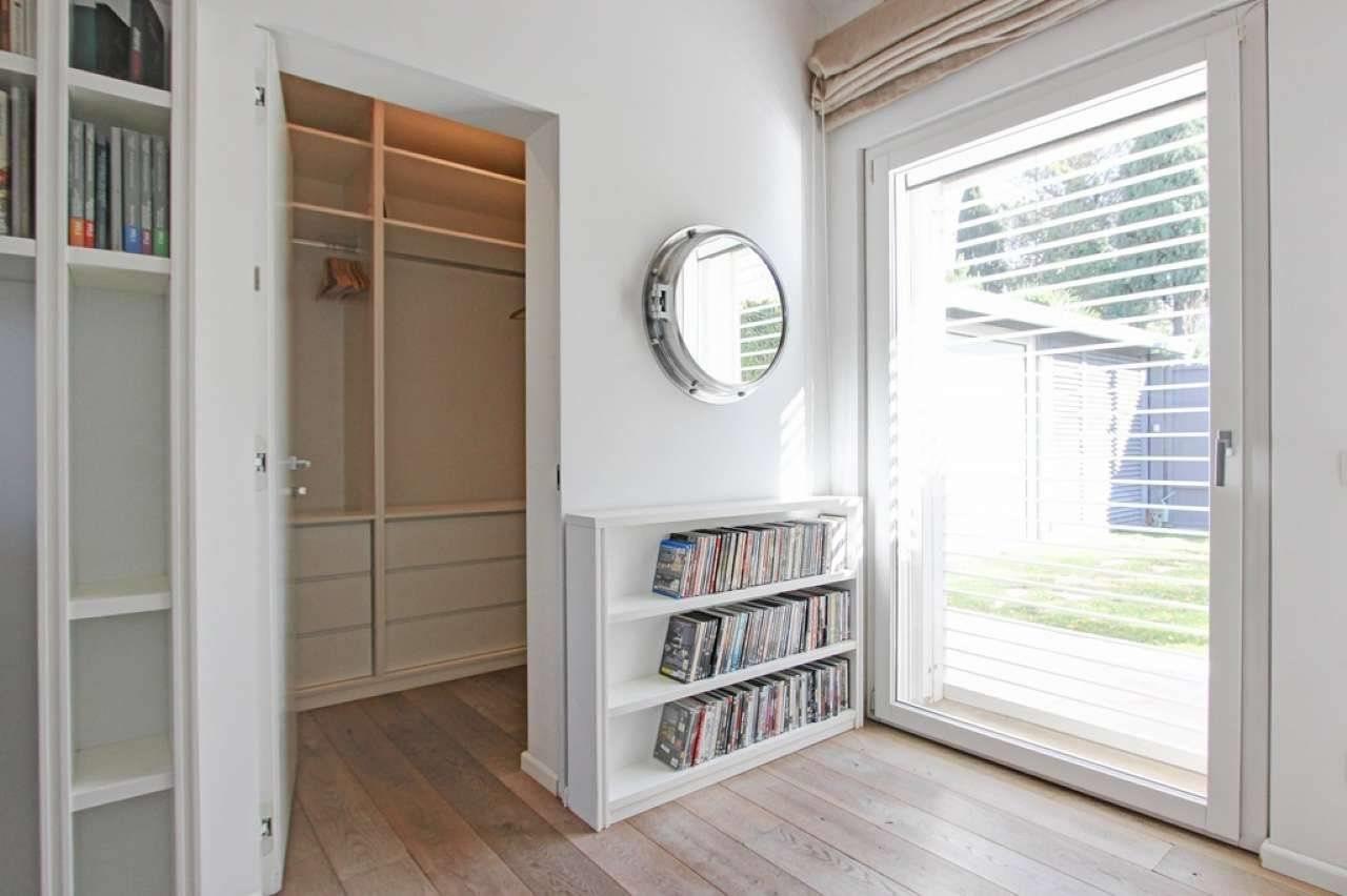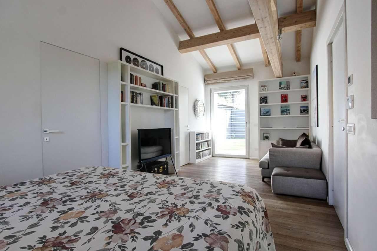 Dotata di un sistema di allarme avanzato e di pavimenti in pregiato parquet a doghe larghe, la proprietà si apre su un elegante patio che conduce al curatissimo giardino, in parte pavimentato in corrispondenza della splendida piscina, con ampia zona relax e suggestiva vista dominante nel verde.