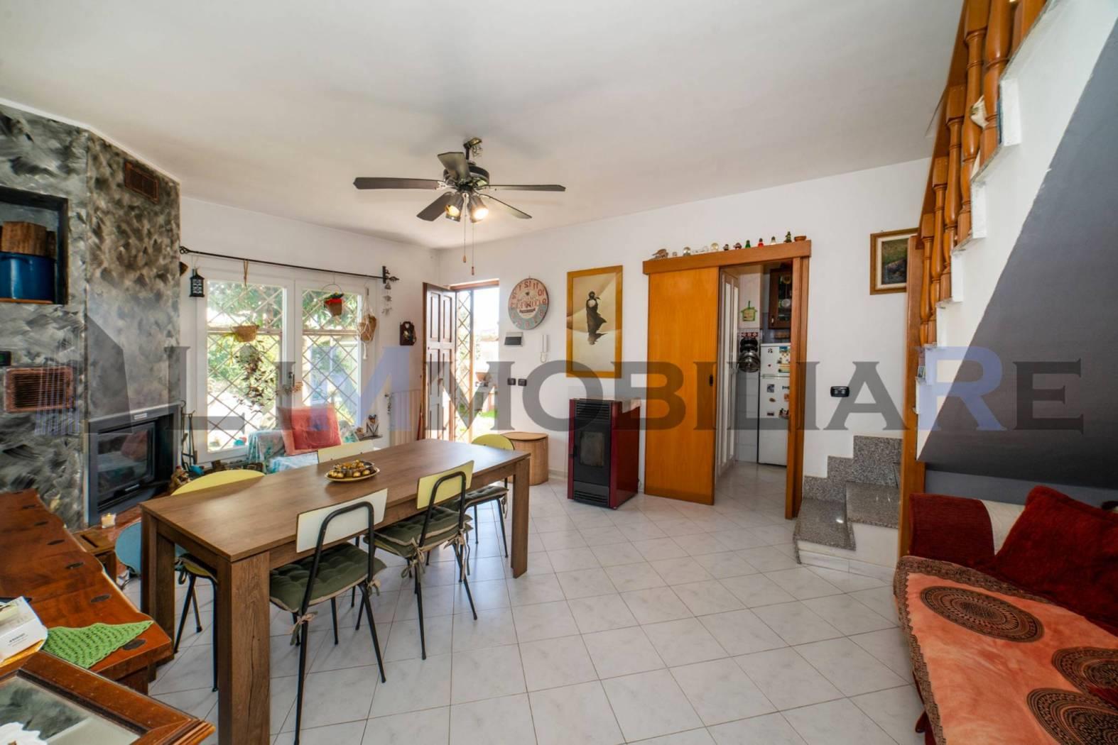 a 7 minuti dal mare, ad.te viale po, proponiamo una eccellente opportunita': villino a schiera bilivelli, piano terra + primo piano collegati con scala interna, di 80 mq c.a., in ottime condizioni interne, così composto: al piano terra da soggiorno con termocamino a legna, camera, cucina e servizio; al 1° piano da 2 camere, servizio e balcone + un grande giardino privato di 85mq c.a, che consente di posteggiare più autovetture all'interno della proprieta' ed un patio, spazi questi, ideali per chi ama momenti di relax e tranquillità da vivere all'aria aperta. posizione strategica con negozi di prima necessità e attività commerciali varie, a brevissima distanza. soluzione ideale per giovani coppie o per famiglie anche con amici a quattro zampe.
