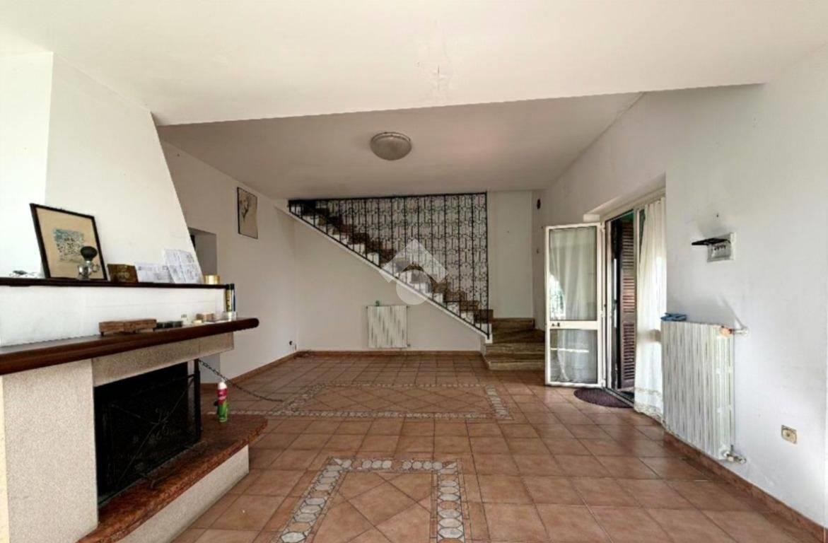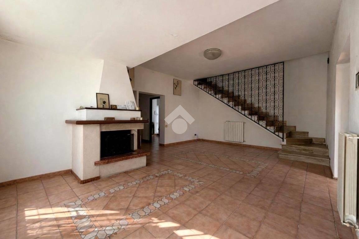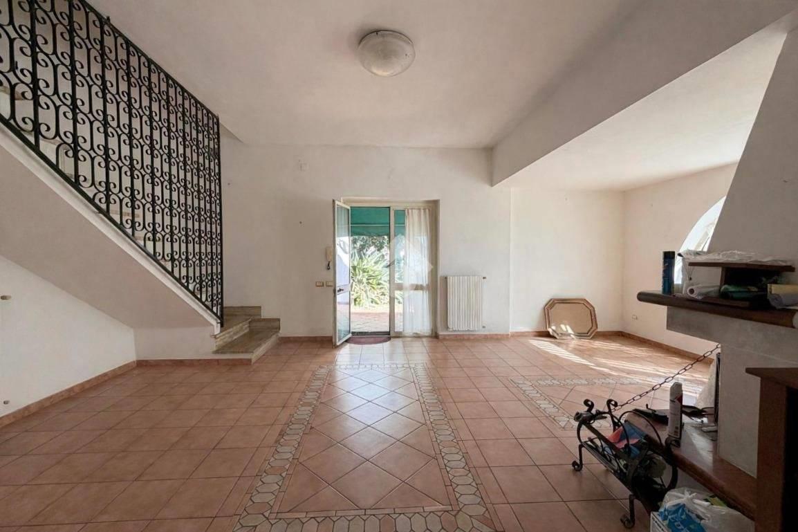 Piano terra: ampio e luminoso soggiorno con camino, una cucina abitabile che, tramite porta finestra da accesso diretto al giardino sul retro, una camera da letto, ed un bagno finestrato con doccia.