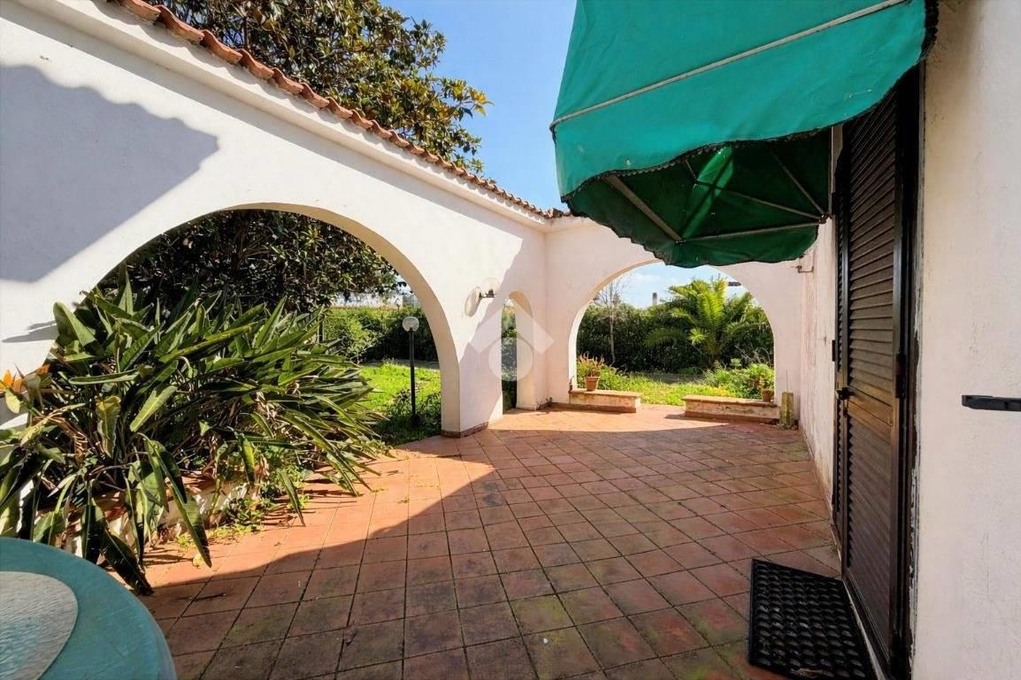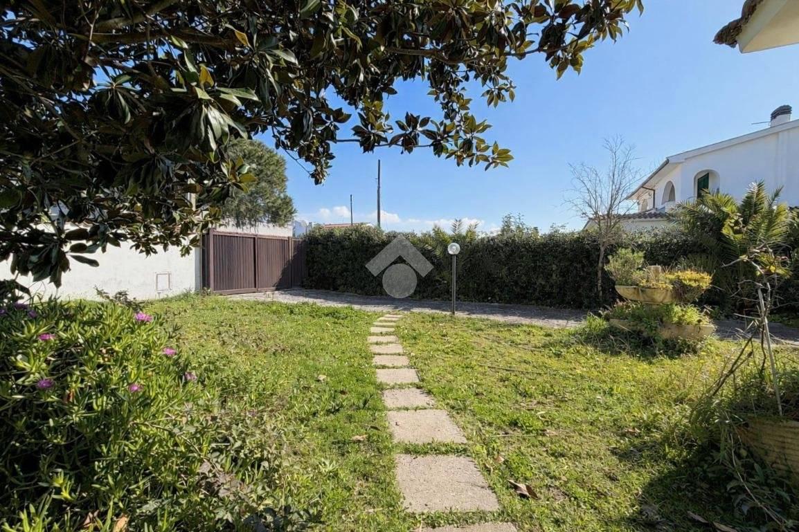 Il giardino, in parte mattonato, dispone di cancello carraio che consente di parcheggiare comodamente più auto all’interno della proprietà.